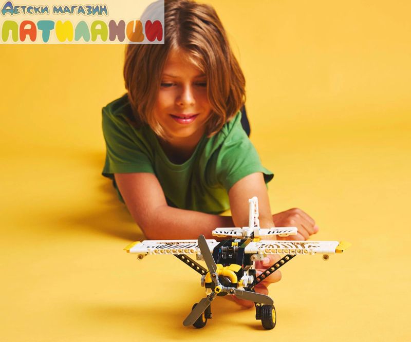Комплектът с модел включва LEGO® Technic Самолет с витло за конструиране с въртящо се витло и е чудесен подарък за деца, които обичат превозни средства.