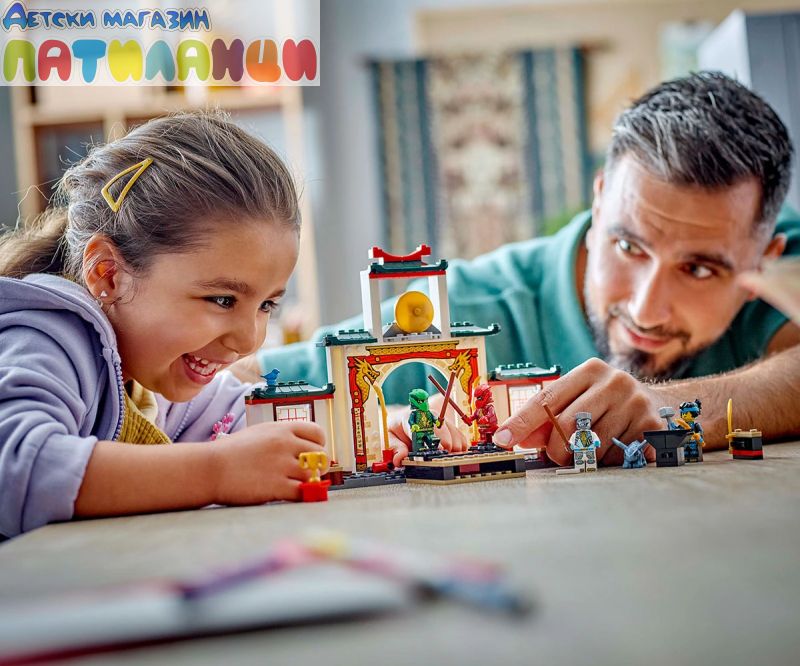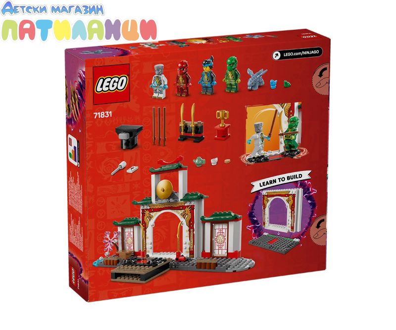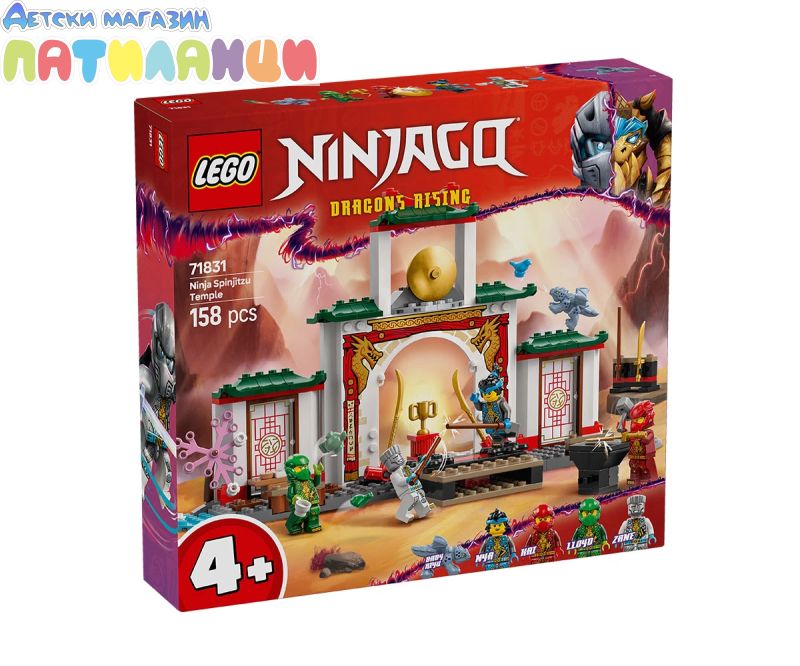Зарадвайте децата, които обичат играчките с нинджи, с LEGO® NINJAGO® Спинджицу храмът на нинджите (71831). Този комплект за игра с дракон позволява на деца на възраст над 4 години да създадат приключения от сезон 3 на ТВ сериала NINJAGO DragonsRising. Този комплект за нинджа ролеви игри е идеален за представяне на игра с турнирна арена NINJAGO, градина, чайна и зона за тренировки с оръжие. Този комплект LEGO включва 4 минифигурки NINJAGO: Зейн, Ния, Кай и Лойд, плюс драконът на бебето Риу, така че цата да може да разиграва ролеви нинджа ексшън. Мини фигурката може да бъде добавена към 2 въртящи се плочи за епични битки, а за още по-добра игра има голям набор от аксесоари: нинджа оръжия, включително 2 меча и 3 тояги, както и чук, птица, жаба, трофей, бисквитка и писмо . Играчката с нинджи е създадена, за да осигури забавно строителство за деца на възраст над 4 години, които откриват радостта от конструирането с тухлички LEGO. Приключената играчка се предоставя с начална тухличка: частично изградена основа, която помага на децата да строят бързо и уверено.