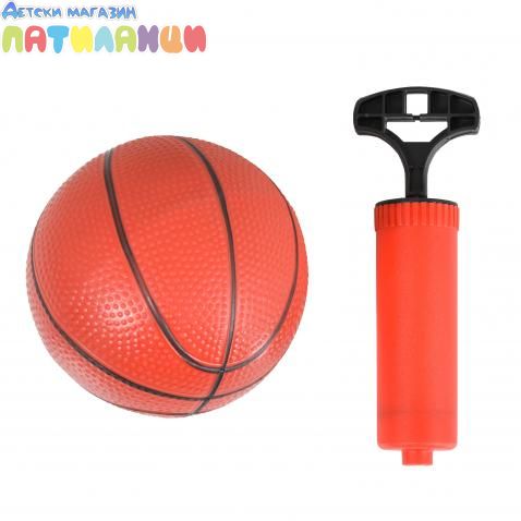• Баскетболна топка и помпа за бързо и лесно надуване.