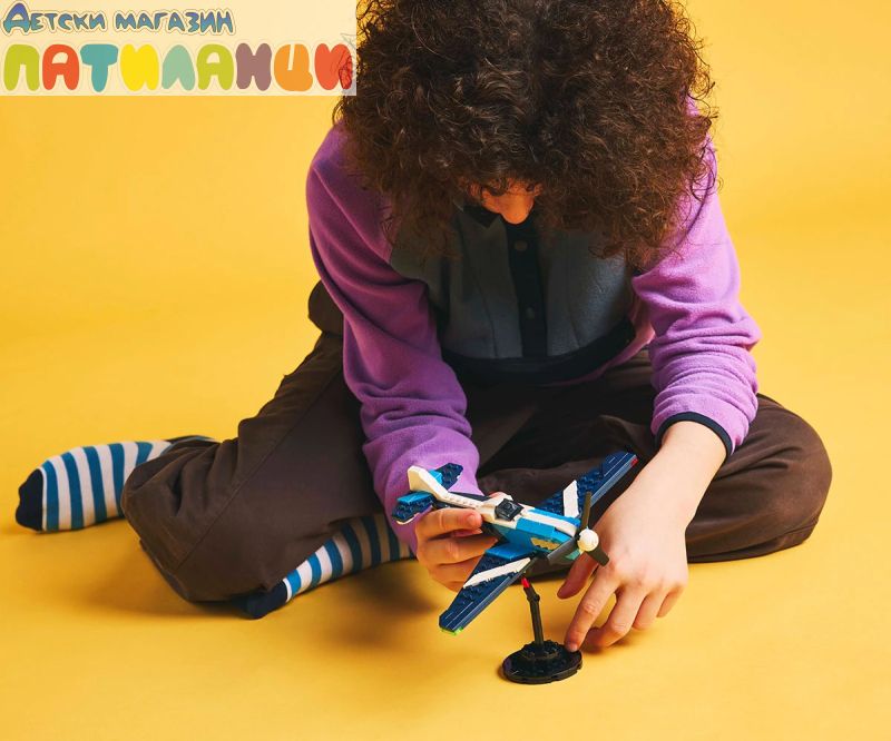 Размери – комплектът от 178 части с летяща играчка за деца включва състезателен самолет LEGO® с размери над 7 см височина, 20 см дължина и 21 см ширина.