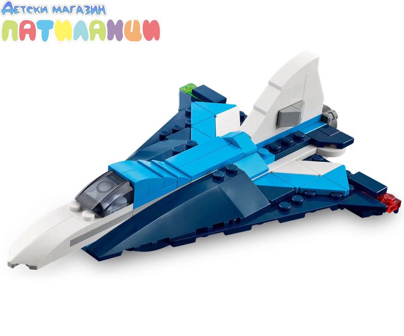 Безкрайни възможности за игра – децата могат да организират въздушни приключения с 3 различни превозни средства за построяване (моделите не могат да бъдат построени едновременно): състезателен самолет, реактивен самолет и модел на хеликоптер;