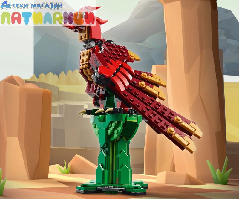 Върнете се назад във времето за невероятни средновековни приключения с 3 различни митични създания! Спуснете се от небето с великолепен дракон, за да защитите сандъка със съкровища, пълен със скъпоценни камъни. За още фентъзи ексшън го промените в титанична морска змия, дебнеща във водата, или пък във величествен феникс, канещ се да полети. Изборът е вашият с този фантастичен комплект „3 в 1“!