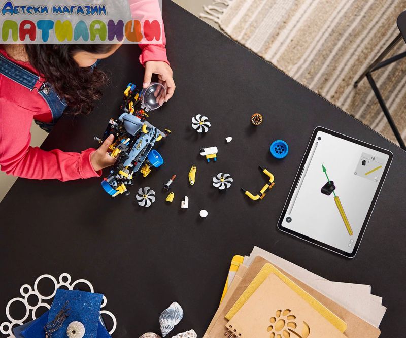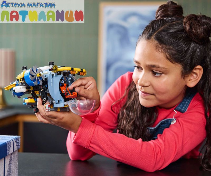 Вдъхновете децата на възраст над 9 години да изследват тайните на океаните с комплекта „Дълбоководна изследователска подводница“ (42201). Моделът има много функции като управление на тези на истинските подводници, включително кормилно, 3 въртящи се витла, 3 въздушни резервоара и пилотска кабина със седалка и пулт за управление. Подводницата разполага с удължаваща се ръка за хващане и повдигане на бъчвата, докато децата разиграват приключения на морското дъно. Този комплект с модела на подводницата е част от гамата комплекти LEGO® Technic, които се отличават с реалистично движение, за да включат младите строители във вселената на техниката. Този комплект е чудесен подарък за деца, които обичат превозни средства за конструиране. Приложението LEGO Builder ръководи децата в интуитивно строително приключване, като позволява машиниране и завъртане в 3D на моделите, запазване на комплекти и проследяване на напредъка.