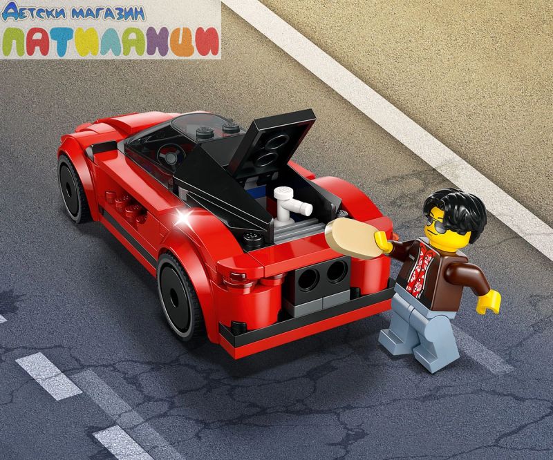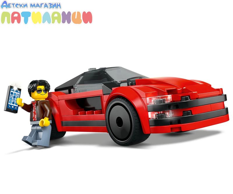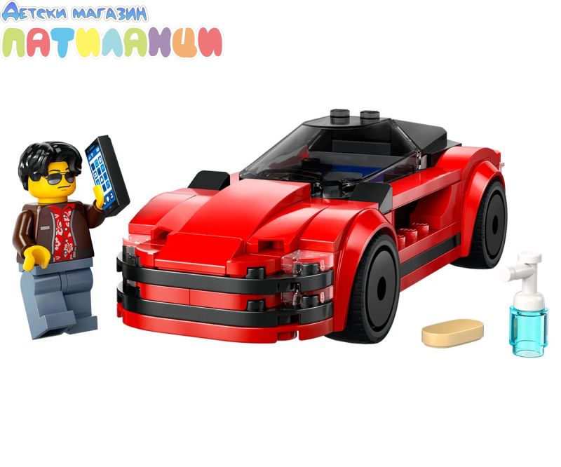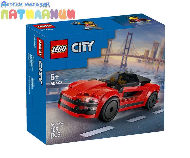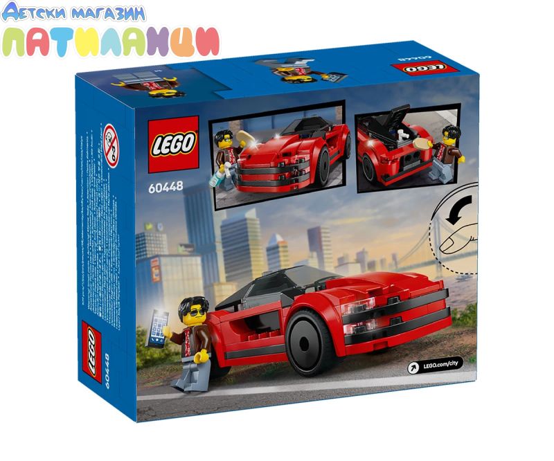Зарадвайте малкия си автомобилен ентусиаст с комплекта LEGO® City Червена спортна кола за възраст над 5 години (60448). Тази елегантна суперкола разполага със страхотни джанти, нископрофилни гуми и затъмнено купе. Децата може да постави минифигурата на водача зад волана и да съхрани включения мобилен телефон и аксесоарите за почистване в багажника, преди да продължи към магистралата за високоскоростни приключения! Този лесен за построяване на комплект LEGO със спортна кола включва печатно ръководство за конструиране и 3D инструкции в приложението LEGO Builder – цифров помощник за построяване с инструменти за машиниране и завъртане, с които децата могат да визуализират моделите от всички ъгли по време на конструиране. Комплектът LEGO City включва страховити превозни средства, реалистични структури и забавни герои, които вдъхновяват играта с въображение без ограничения. Децата могат да добавят тази кола към други комплекти с превозни средства (продават се отделно) от гамата LEGO City за един цял свят от възможност за игра.