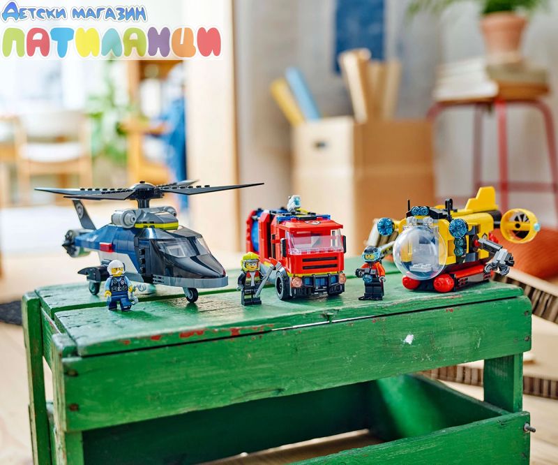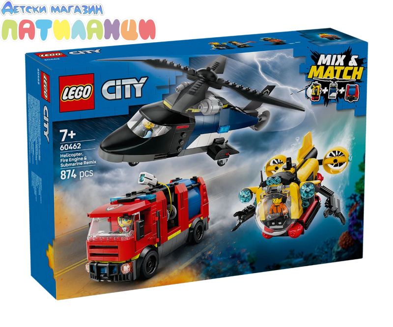 Име: LEGO® City 60462 - Ремикс на хеликоптер, пожарна кола и подводница