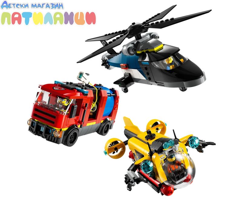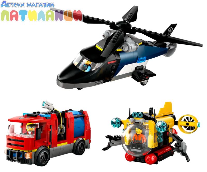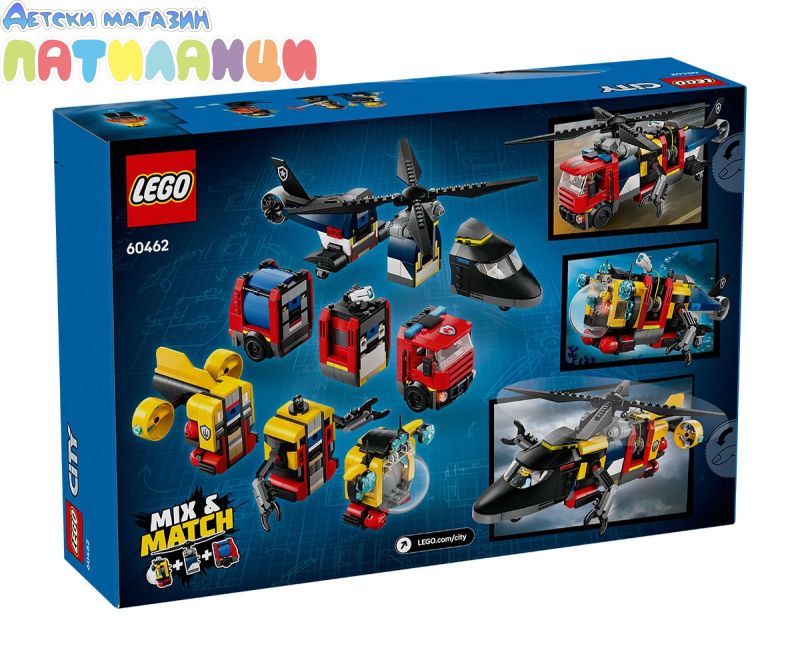 Име: LEGO® City 60462 - Хеликоптер, пожарна кола и подводница – ремикс
