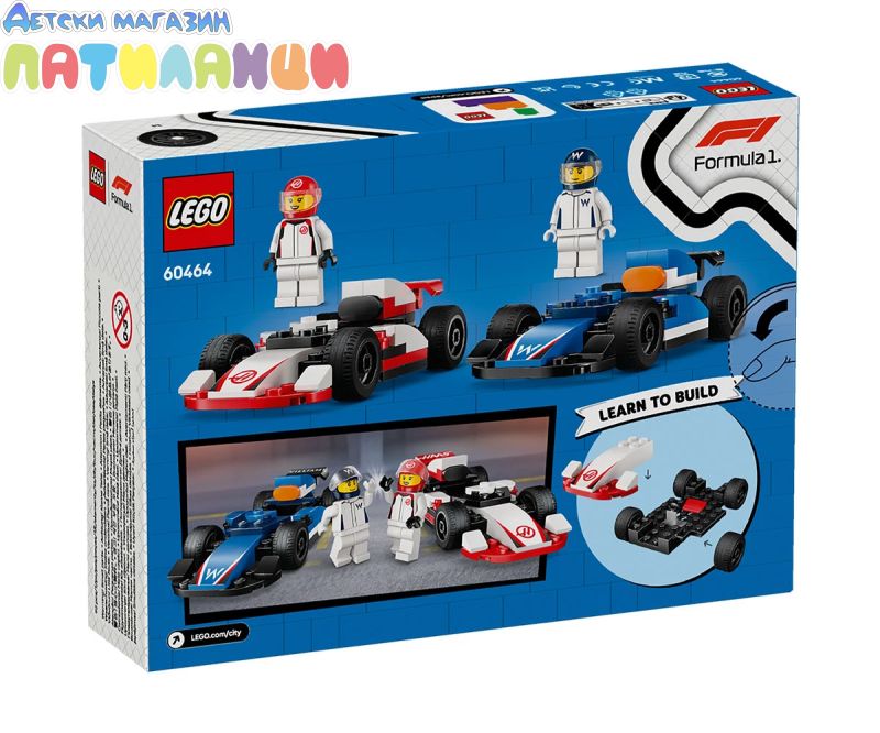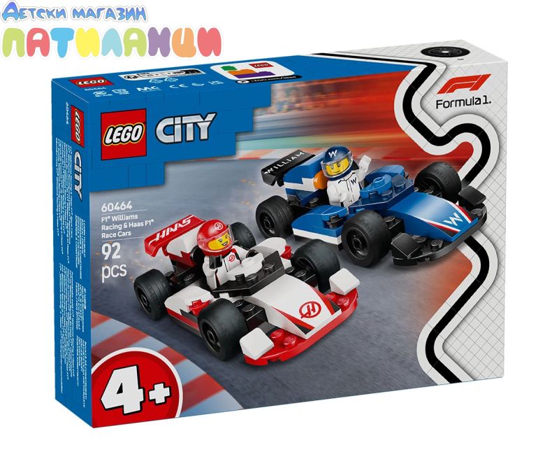Внесете вълнението от пистата в играта на вашето дете с комплект с превозни средства LEGO® City F1® Състезателни коли F1® Williams Racing и Haas F1® (60464) за възраст над 4 години. Перфектен за малки любители на състезанията, този комплект на тема F1 от LEGO включва две реалистични състезателни коли от Formula 1® с гладки гуми. Просто добавете мини фигурки на пилотите на Williams и Haas и някое състезателно забавление започне. Открийте динамичната гама от комплекти LEGO на тема F1 за деца и възрастни. Лесният за построяване на комплект с коли от F1 включва начална тухличка LEGO, ръководство с картинки и F1 инструкции в приложението LEGO Builder – цифров помощник за построяване с инструменти за машиниране и завъртане, позволяващ на децата да визуализират моделите от всички ъгли, докато строят. Строителните комплекти LEGO City въвеждат децата в света на страховити автомобили и машини, които можете да изследвате близо до реалистични модели и забавни герои за ролеви игри. Децата могат да добавят този комплект със състезателни коли към други (продават се отделно) от гамата LEGO City за още повече вълнуващ състезателен екскшън.
