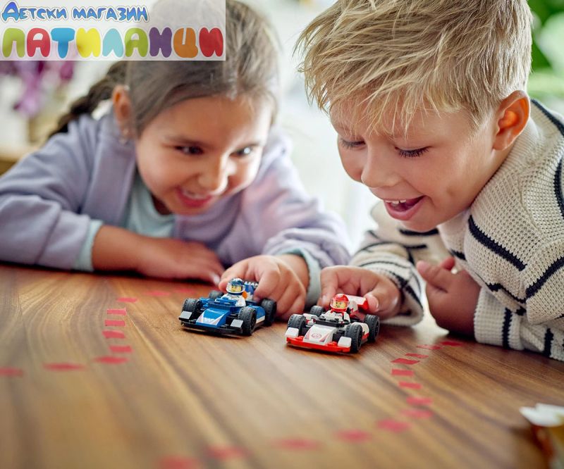 Децата организира епични състезания с комплекта LEGO® City Състезателни коли F1® Williams Racing и Haas F1® с 2 модела на коли от F1 и 2 минифигурки на пилоти.