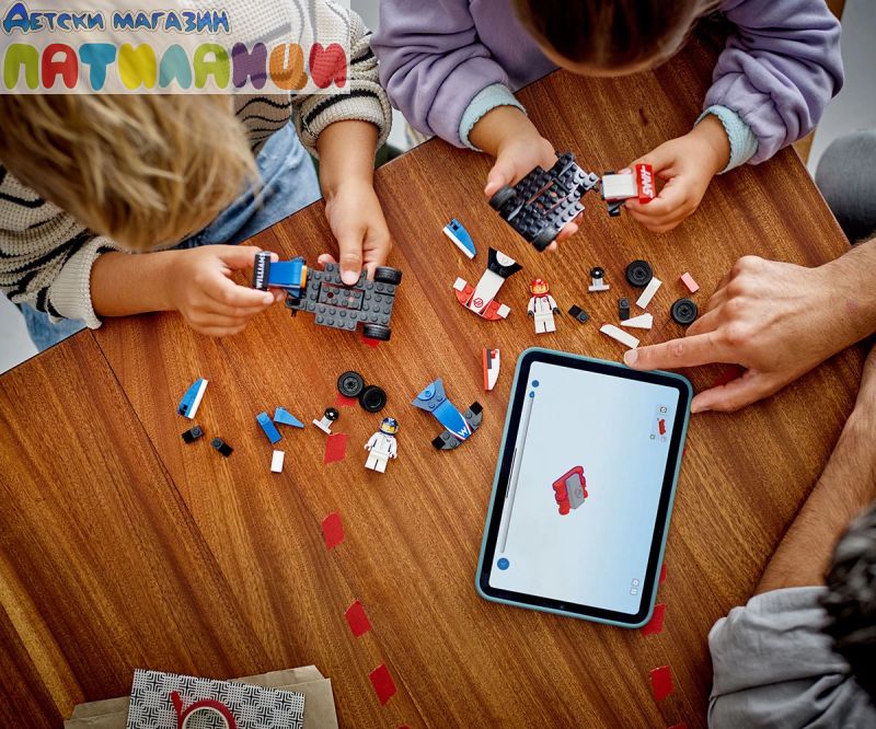 Забавно цифрово конструиране – този комплект LEGO® от F1® включва начална тухличка LEGO, просто ръководство за построяване с картинки и 3D цифрови указания в приложението LEGO Builder;