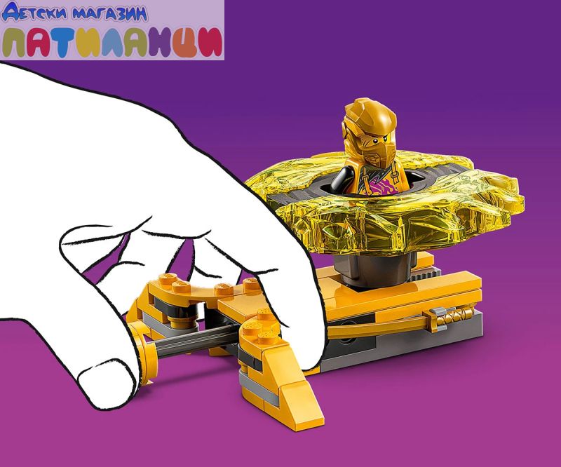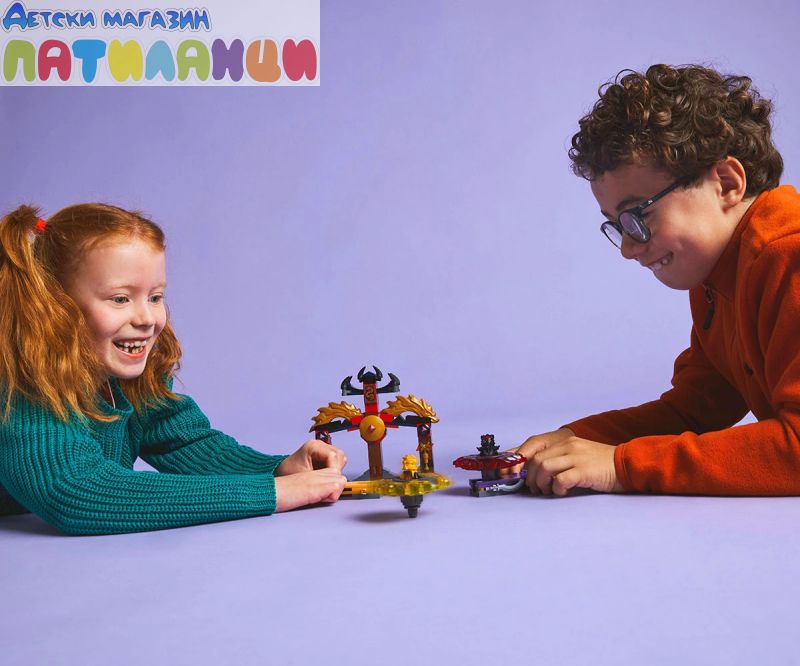 Организирайте страховити битки със спинери между Арин и злия Рас! ги изобразете в техните спинери за драконово спинджицу и нажмете бутоните на изстрелващите устройства. Гледайте как се въртят във вълнуващите скоростни битки! Като удрят и срутват бойната арена на храма, те могат да спечелят висококачествени златни елементи, за да подобрят своите спинери. Кое ще възтържествува – доброто или злото?