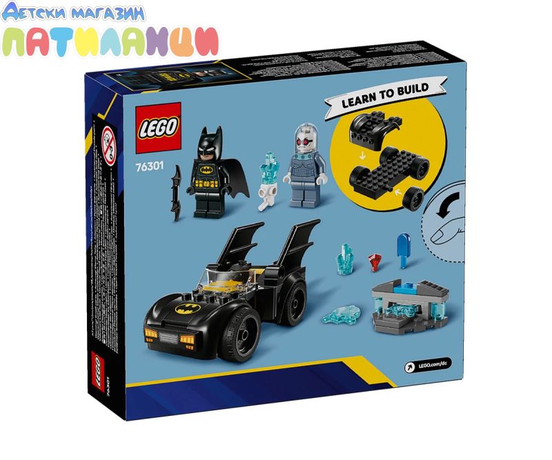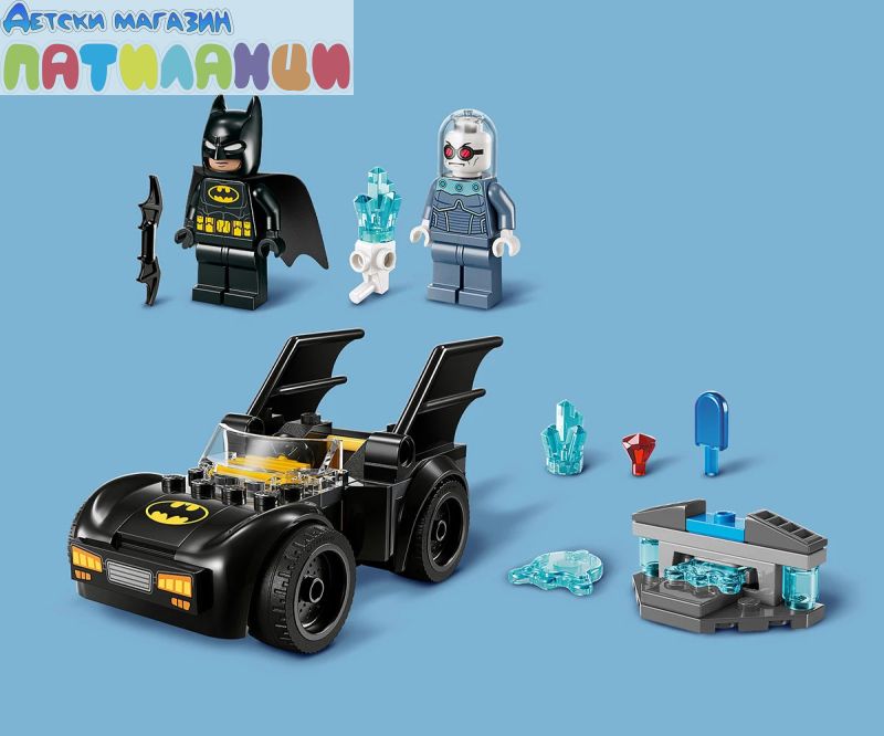 - Играчки със супергерои – комплектът включва минифигури на Мистър Фрийз™ и Батман, плюс Батмобил за построяване с голяма начална тухла, която прави строителството забавно и бързо;