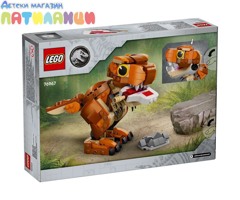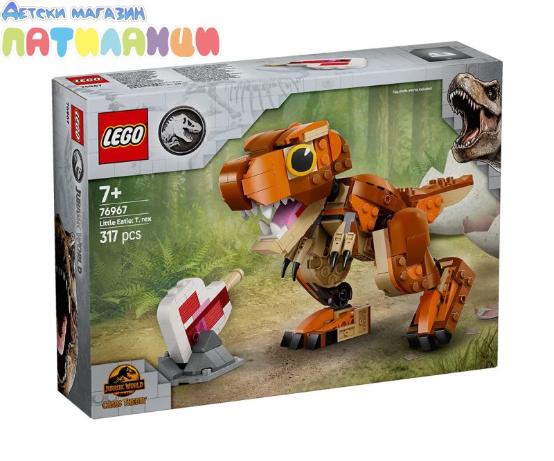 Вълнуващите приключения, грижи и игри очакват малки фенове на динозаврите на възраст над 7 години с този модел на динозавър LEGO® Jurassic World „Малката Ийти: Тиранозавър рекс“ (76967), пълен с възможности за игра и показване. Грижовните деца могат първо да сглобят този строителен комплект с динозаври LEGO, преди да се потопят в играта, докато изследват праисторическия свят с Малката Иди от Jurassic World: Camp Cretaceous. Този комплект от Jurassic World: Chaos Theory включва фигура от тухлички на тиранозавър рекс с интерактивна челюст и подвижна опашка и крайници, които позволяват различни позиции. След края на играта динозавърът за момчета, момичета и фенове може да се покаже на сал или бюро. Този детски подарък е идеален за игра с въображение и може да се добави към други модели LEGO Jurassic World (продава се отделно). Този комплект LEGO с динозаври позволява на децата да създадат сцени от анимационен сериал или да покажат страстта към всичко, свързано с Джурасик свят. Комплектът е и с идеален размер за преносимо забавление и игра навсякъде.