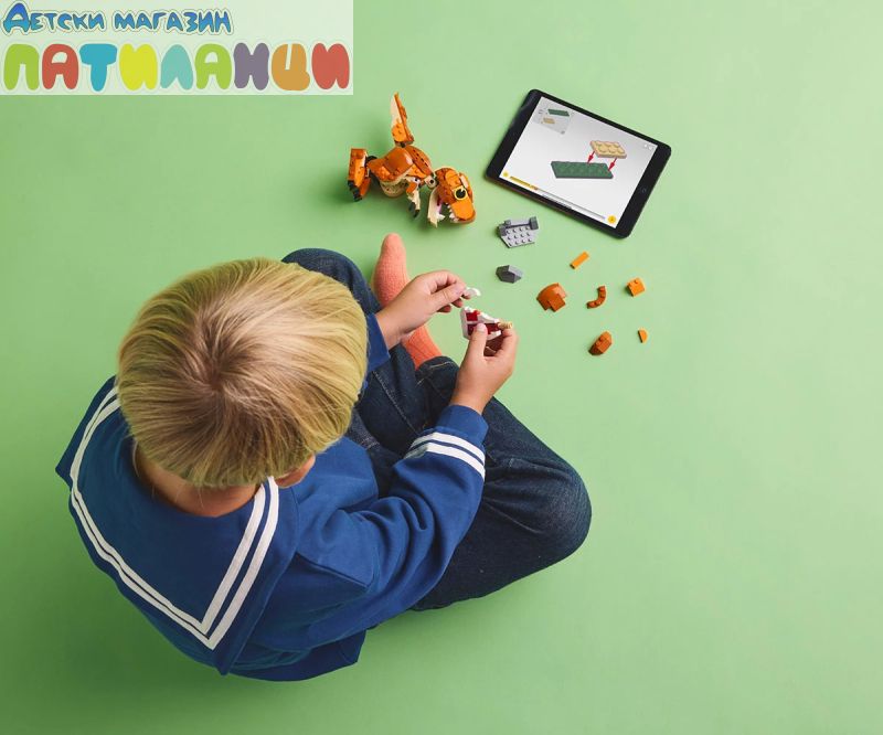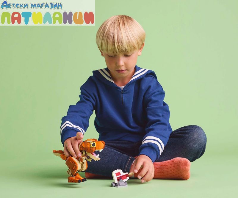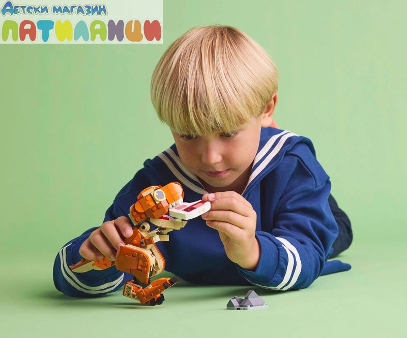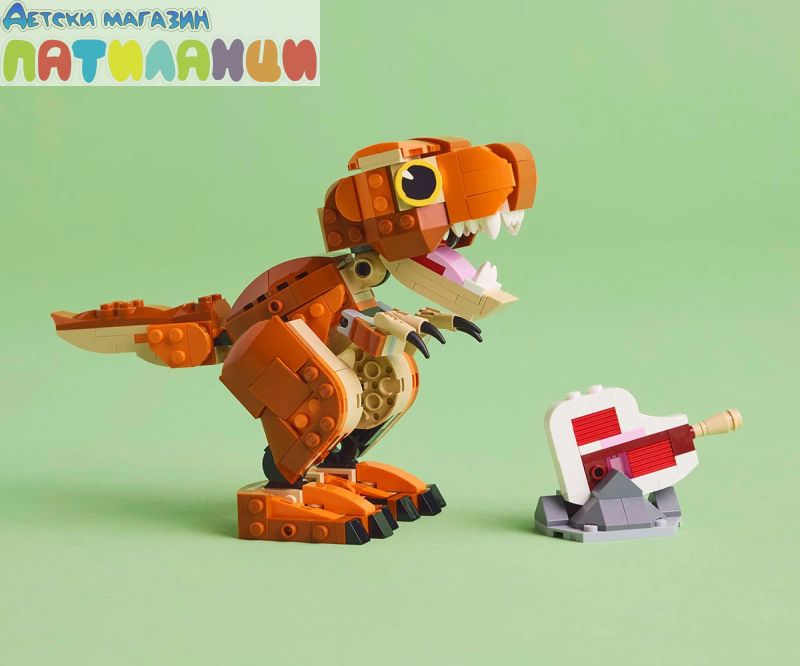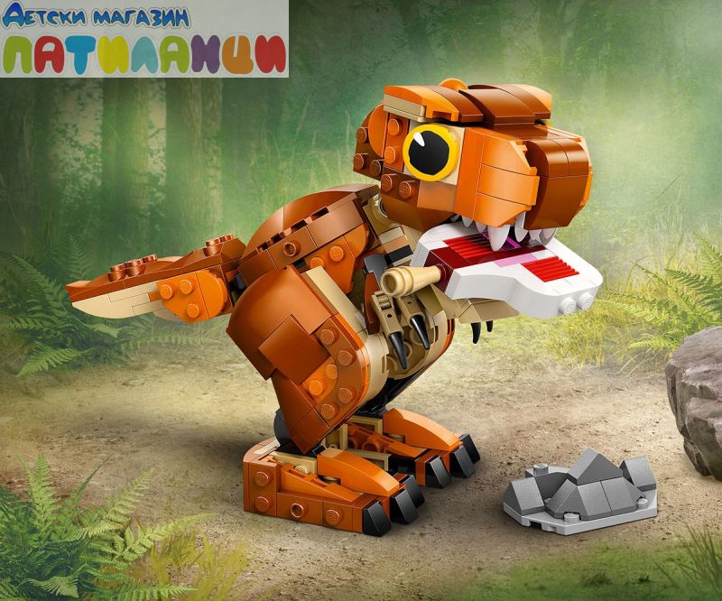 Подвижен динозавър LEGO® – с отварящи се челюсти, подвижна глава и опашка и движещи се ръце и крака, този конструктор от Jurassic World: Chaos Theory може да се показва в различни позиции за игра или показване;