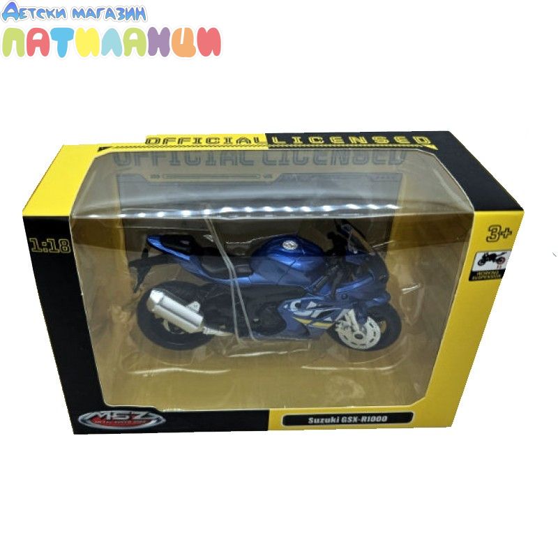 Моделът на мотоциклет SUZUKI GSX-R1000 - 1:18 от MSZ е практично допълнение към всяка колекция. Този модел улавя основните характеристики на оригиналния SUZUKI GSX-R1000 , известен със своя отличителен дизайн и присъствие на пътя.