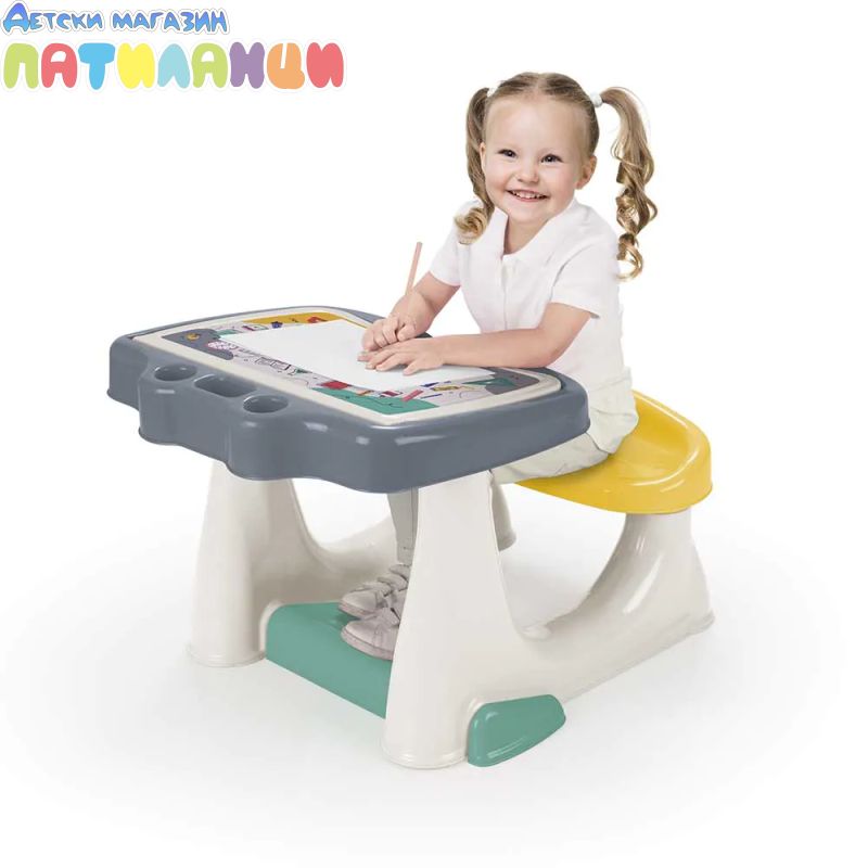 Чинът Dolu с пейка е идеална за малки ученици, които обичат да изследват света на знанието и творчеството. Тази маса е проектирана да осигури комфорт и функционалност, правейки ученето и играта още по-забавни.