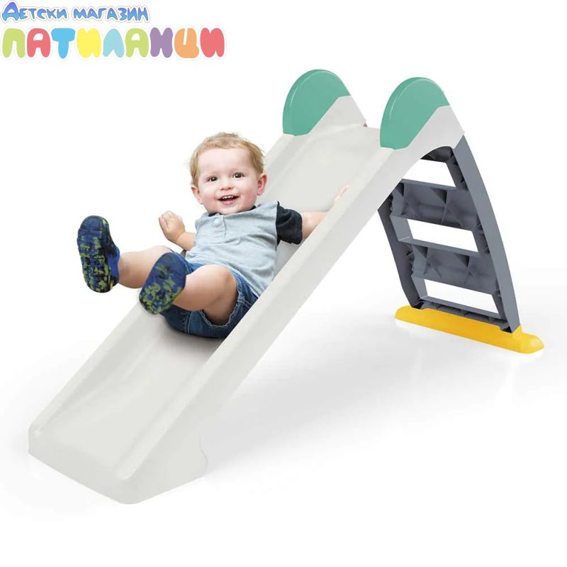 Играй с часове навън с Dolu пързалката! Тя е стилно оцветена с ментово зелени и жълти детайли и може да се използва както на закрито, така и на открито.