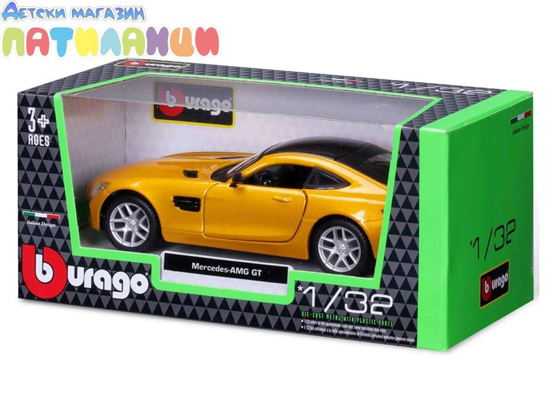 Метален автомобил Mercedes AMG GT Bburago 1:32 жълт