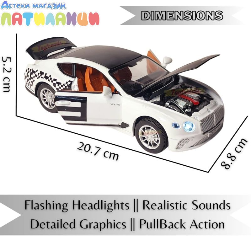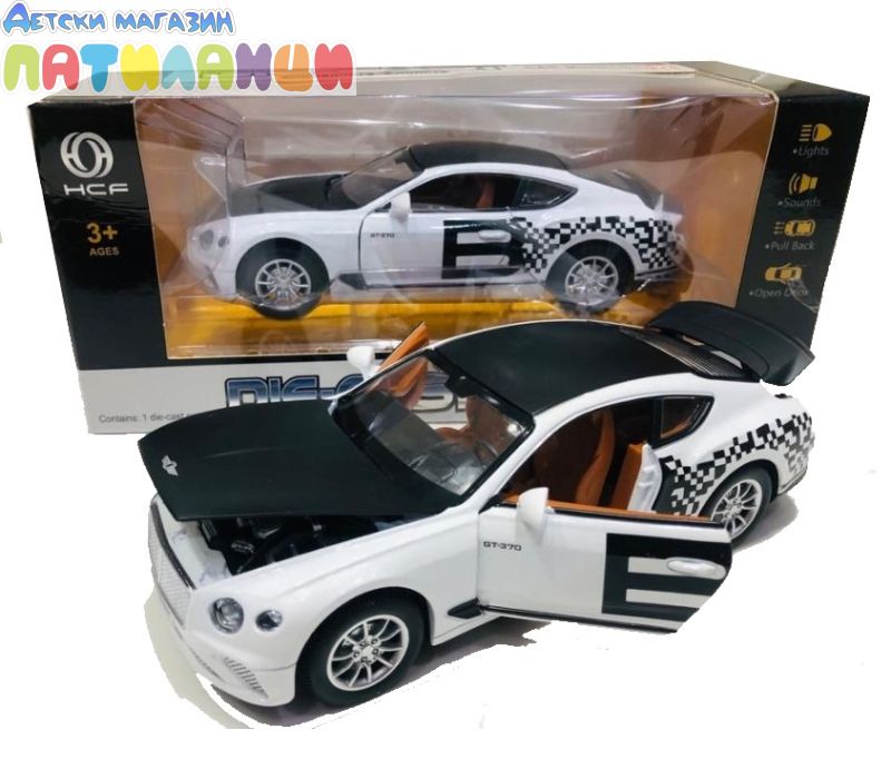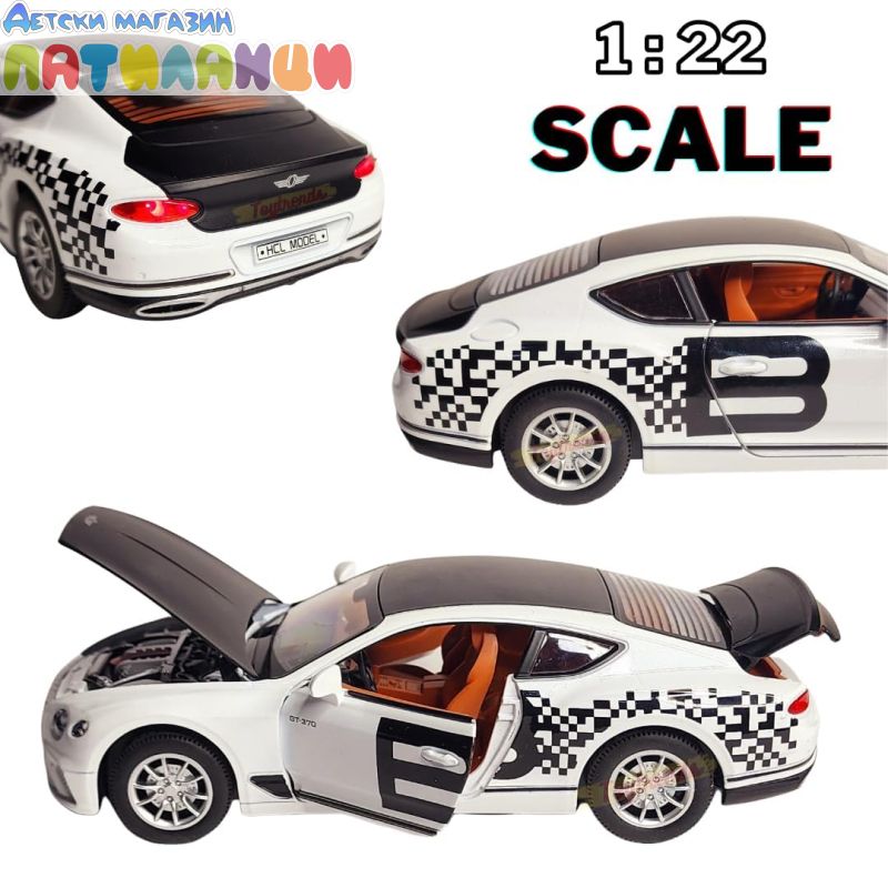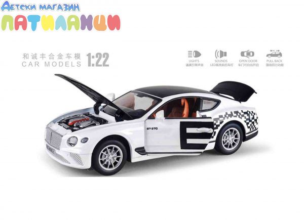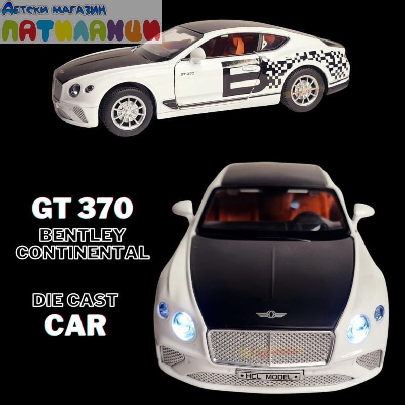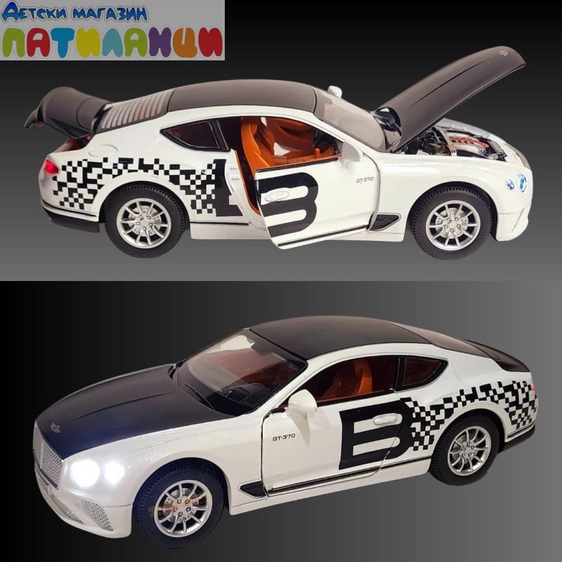 Метален автомобил Bentley Continental GT 370 със звук и светлини 1/24 бял