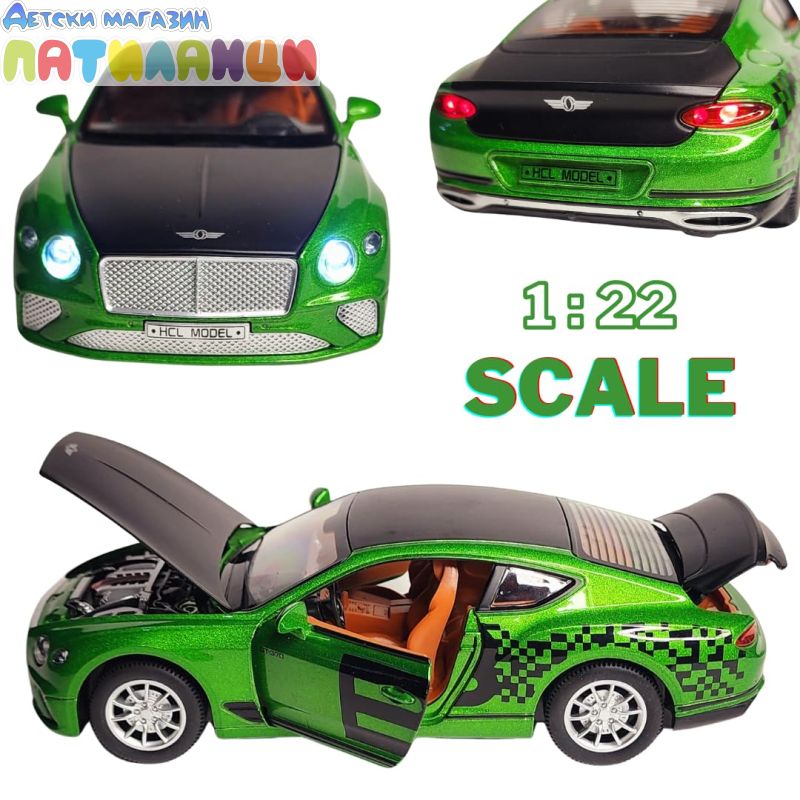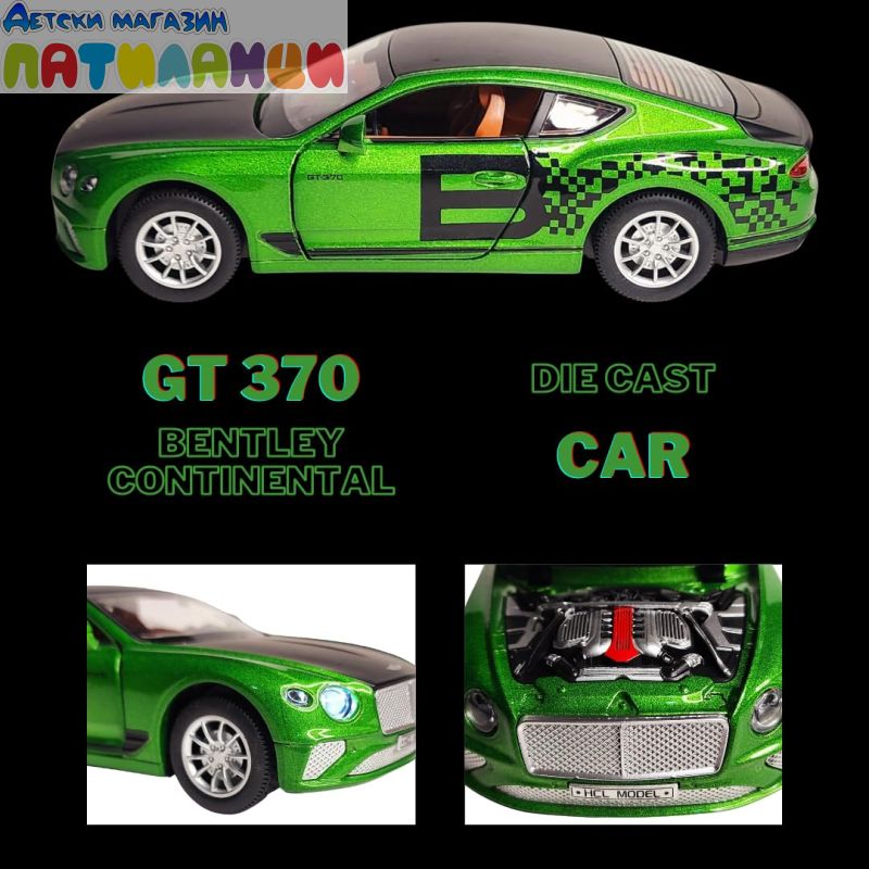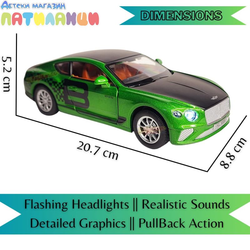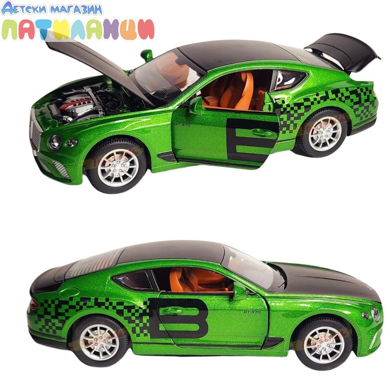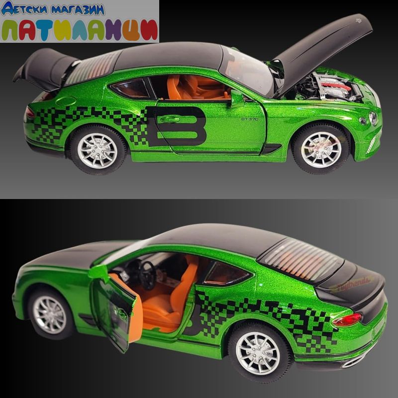 Метален автомобил Bentley Continental GT 370 със звук и светлини 1/24 зелен