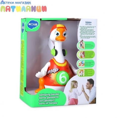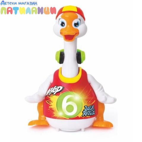 Гъската танцува и рапира в стил хип-хоп, насърчавайки детето също да танцува с нея.