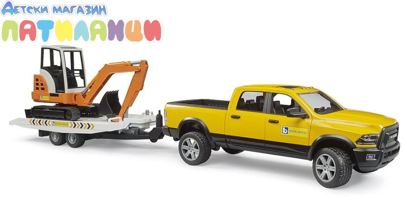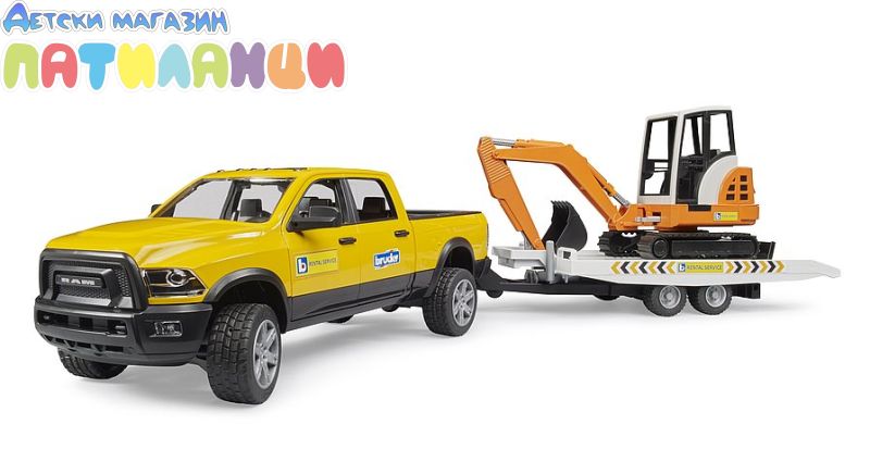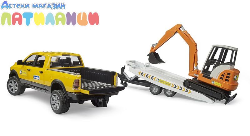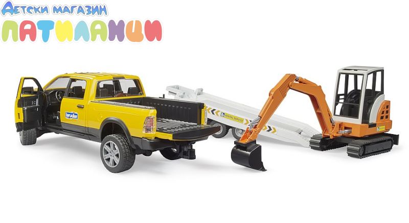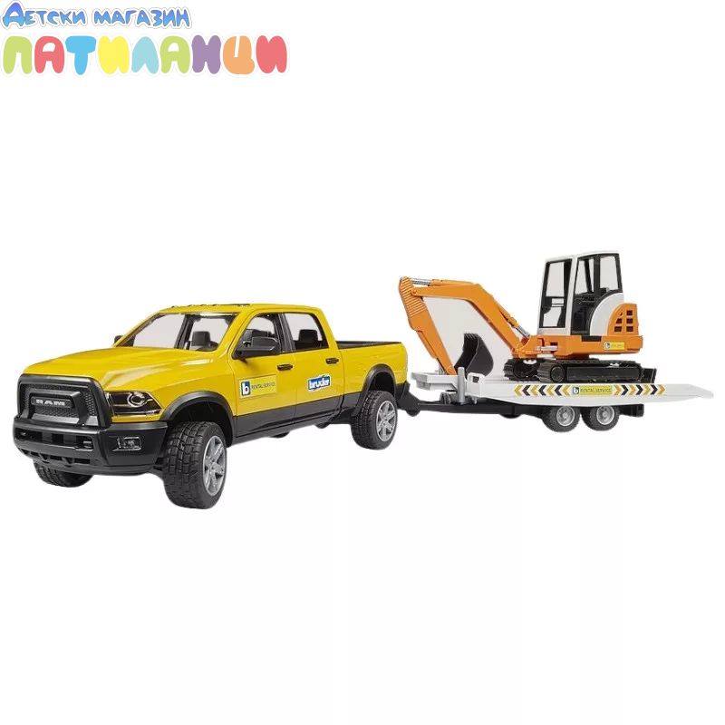 Джип пикап RAM с ремарке и мини багер Bruder 02546