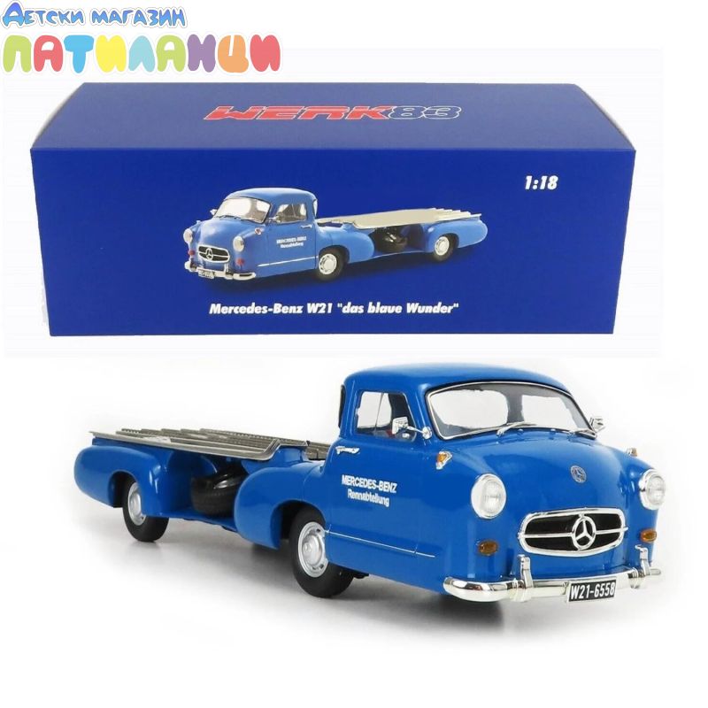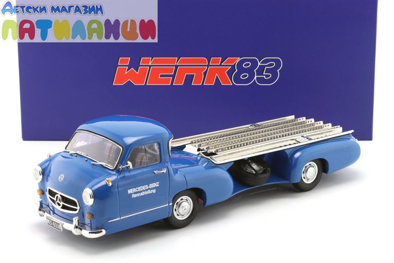 Метална кола Mercedes-Benz Racing Transporter The Blue Wonder 1955 WERK83 W1801701 - 1:18