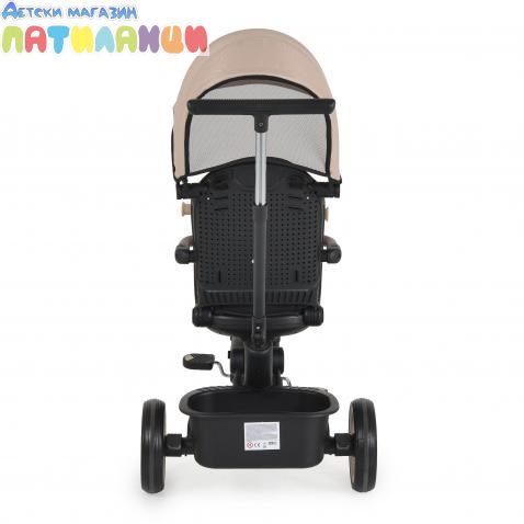Функции: сгъваемо кормило•Регулируема облегалка•Седалка въртяща се на 360°•Сваляща се дръжка•Може да се използва и като колело с 3 гуми