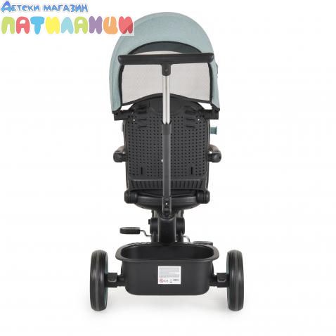 Функции: сгъваемо кормило•Регулируема облегалка•Седалка въртяща се на 360°•Сваляща се дръжка•Може да се използва и като колело с 3 гуми