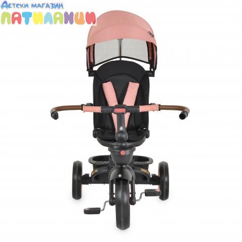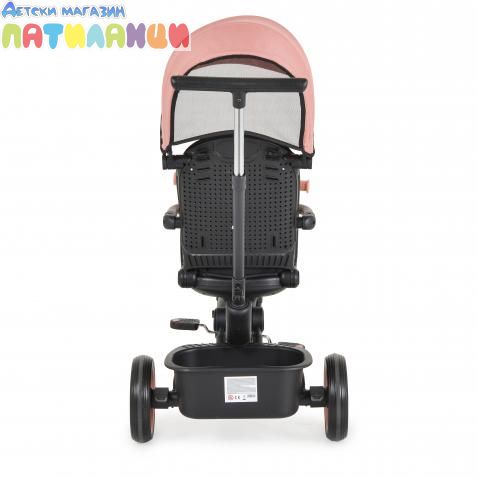 Функции: сгъваемо кормило•Регулируема облегалка•Седалка въртяща се на 360°•Сваляща се дръжка•Може да се използва и като колело с 3 гуми
