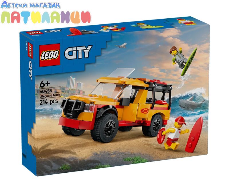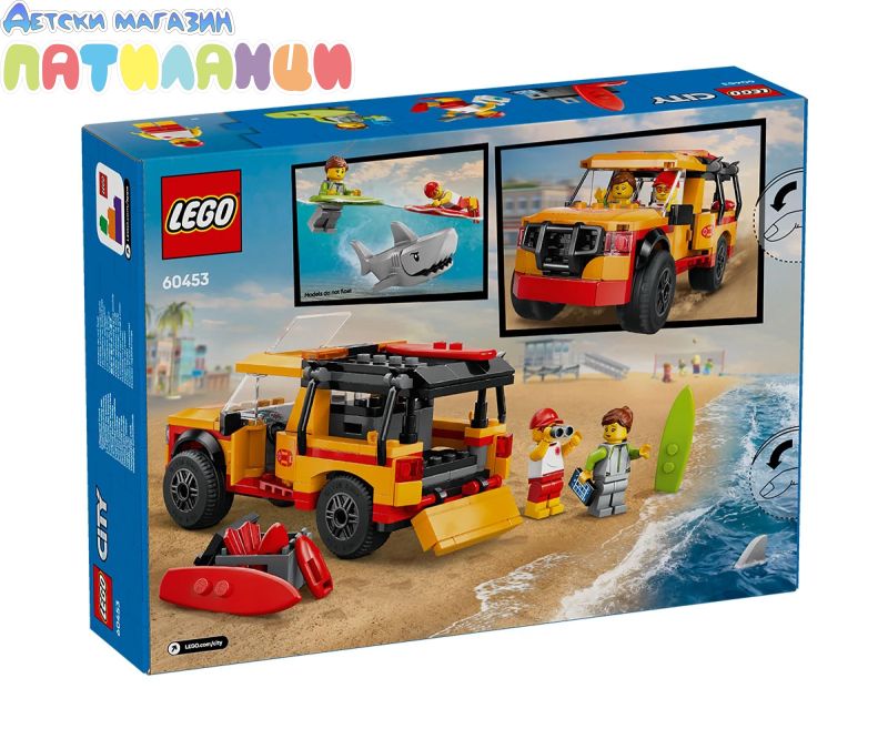 На хоризонта се задават спасителни приключения на плажа с комплекта за игра LEGO® City Пикап за спасители на плажа (60453) за възраст над 6 години. Този страхотен камион има отварящи се врати, задна врата и люк и е оборудван с основните неща за спешни случаи на плажа, включително 2 дъски за сърф, плавници, бинокъл и комплект за първа помощ. Комплектът включва също минифигури на спасител и сърфист и фигура на акула за въображаема игра и разказване на истории. Комплектът за спасяване на плажа включва печатно ръководство за построяване „стъпка по стъпка“ и 3D инструкции в приложението LEGO Builder – цифров помощник за построяване с интуитивни инструменти за мащабиране и завъртане, с които децата могат да визуализират моделите от всички ъглипо време на конструирането. Комплектите за игра LEGO City Great Vehicles включват реалистични земни, въздушни и водни играчки за творческа игра без ограничения. Децата могат да добавят това спасително превозно средство към други комплекти (продават се отделно) от гамата LEGO City за още вълнуващи приключения!
