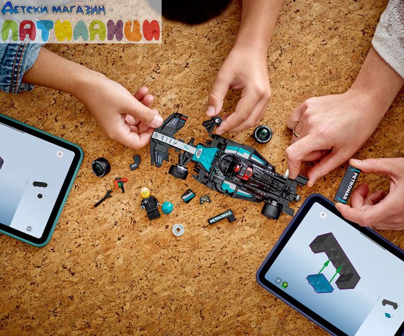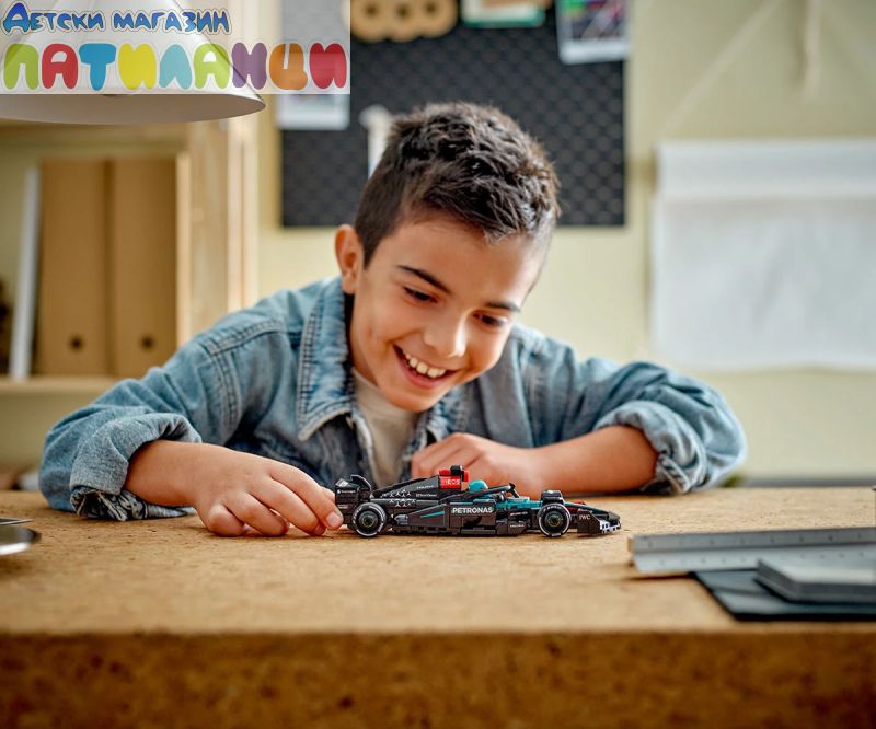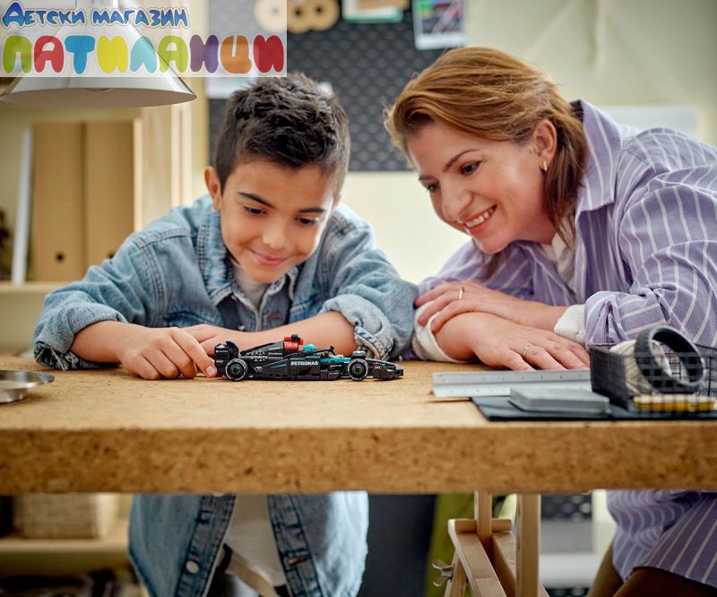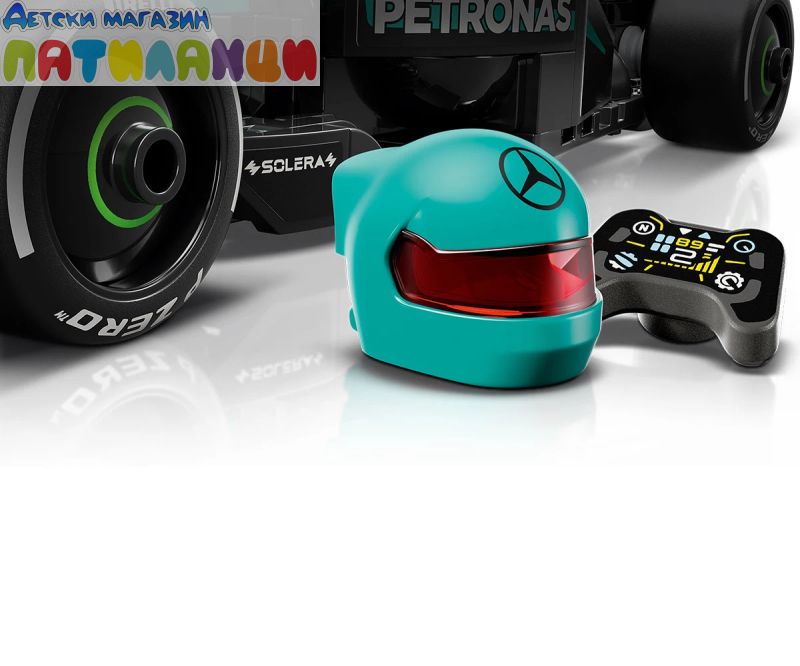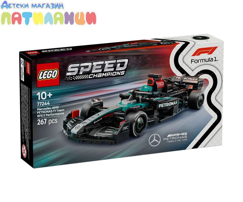 Момчето и момичето на възраст над 10 години могат да колекционират, конструират, показват и да се състезават с този страхотен играч LEGO® Speed Champions Болид Mercedes-AMG PETRONAS F1® Team 77244). Елегантният болид Mercedes-AMG F1 за деца и фенове на Mercedes-AMG PETRONAS F1 Team включва детайли от дизайна на колата, състезавал се в Световния шампионат на Formula 1® през 2024 г. Моделът на колата от F1 има кабина, която се отваря чрез повдигане на ореола, задно крило, окачване с носачи, спонсорски стикери и по-широки задни гуми с надпис „Pirelli“. Моделът за конструиране се предлага с минифигура на пилот в екипировката на Mercedes-AMG PETRONAS F1 Team и „крилат“ шлем, който да се постави в кабината и да се разиграват състезания. С комплектите LEGO Speed Champions децата и феновете на състезанията конструират модели на някои от най-емблематичните превозни средства в света, включително други коли от F1 (продава се отделно) от шампионатния сезон 2024. Всеки комплект с кола може да бъде създаден с помощта на печатни инструкции за построяване или приложение на LEGO Builder, което насочва вас и вашето дете по време на весело строително приключване.