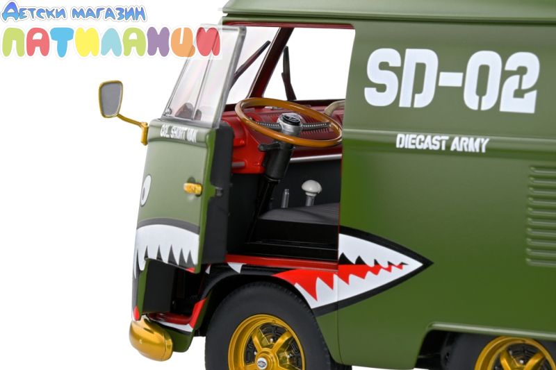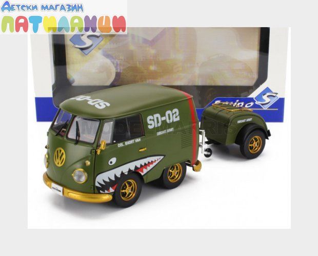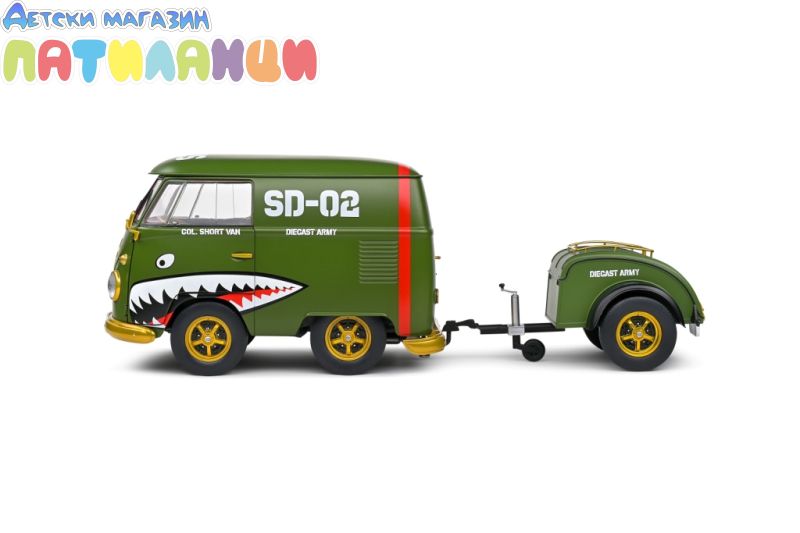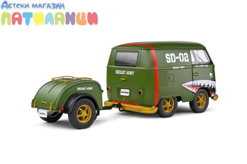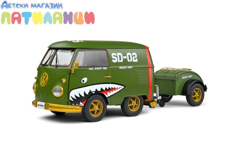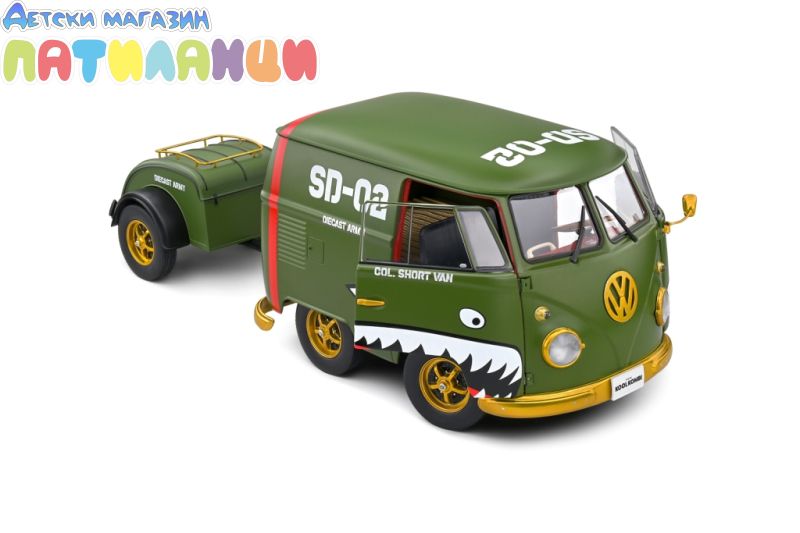 Метален бус Volkswagen Transporter T1 Kool Kombi Army Fighter 1950 SOLIDO 1:18 - 1810603
