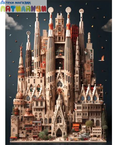 Потопете се в величието на Барселона с този детски занимателен пъзел „Саграда Фамилия“! Състоящ се от 1000 части, този пъзел пресъздава емблематичната катедрала Саграда Фамилия, проектирана от известния архитект Антонио Гауди. Със своите уникални форми и детайли, тази архитектурна забележителност е един от най-важните символи на Барселона и ще добави магия и красота към всяко пъзелно приключение.