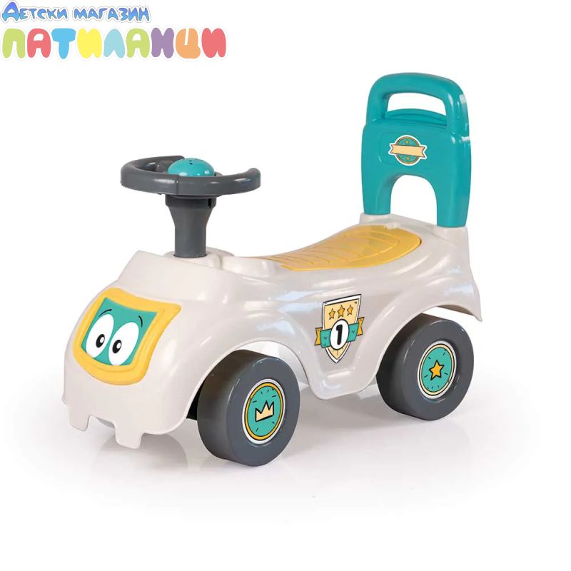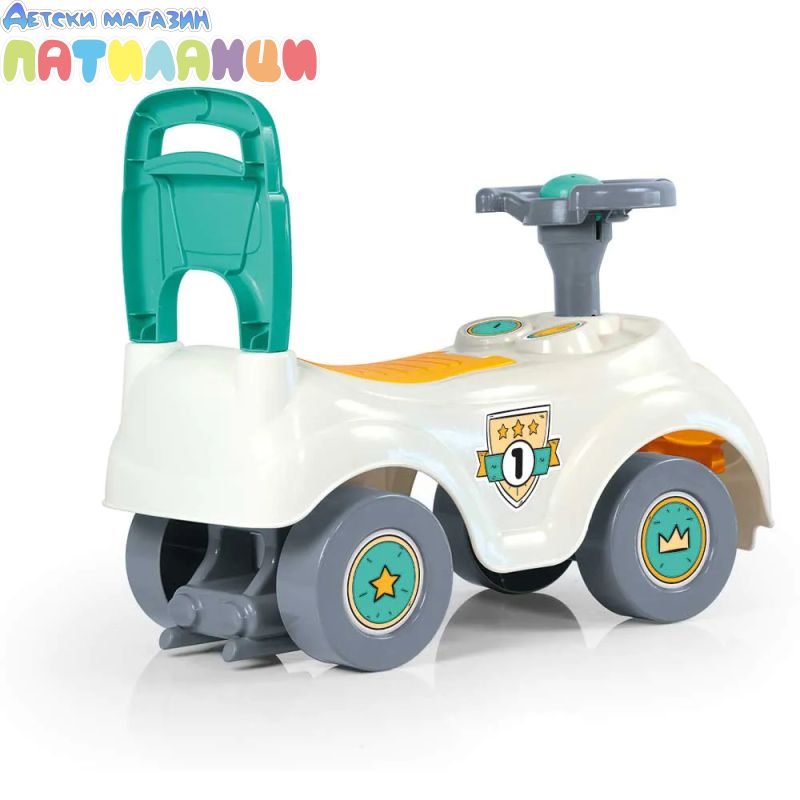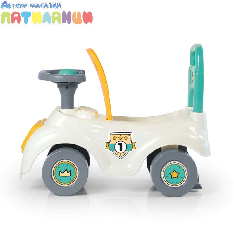 Тази кола за возене и бутане има дизайн на супер готина състезателна кола. Просто се качи, бутай с краката си и потегляй! Повози се на удобната седалка или използвай дръжката на гърба. Можеш дори да повдигнеш меката розова седалка, за да разкриеш удобно място за съхранение – какво ще вземеш със себе си за приключенията? Разполага и с клаксон, за да може всеки да чуе пристигането ти!