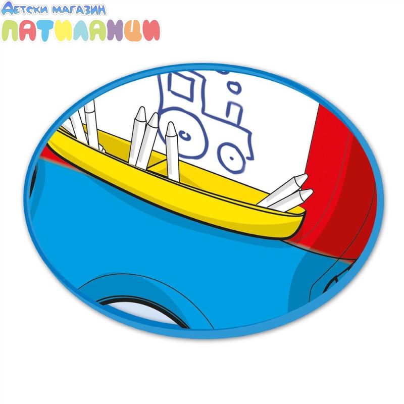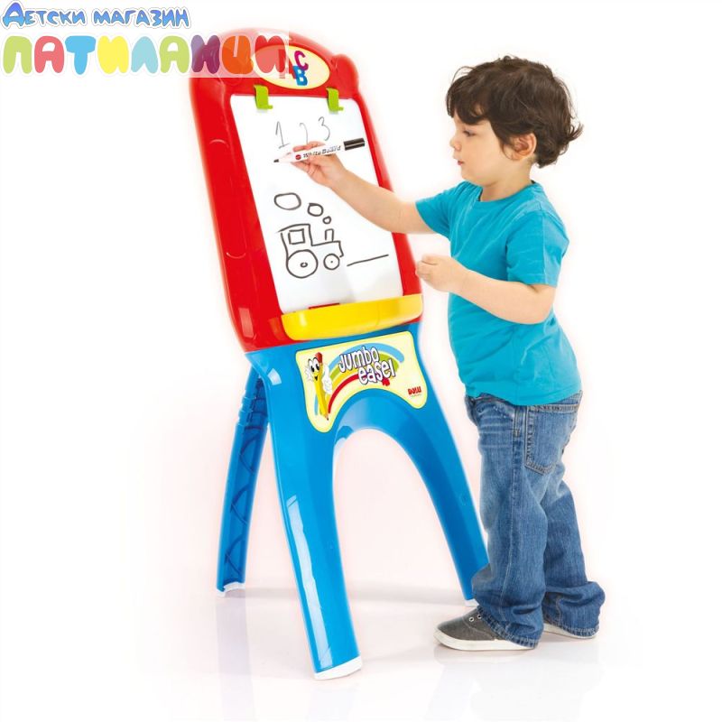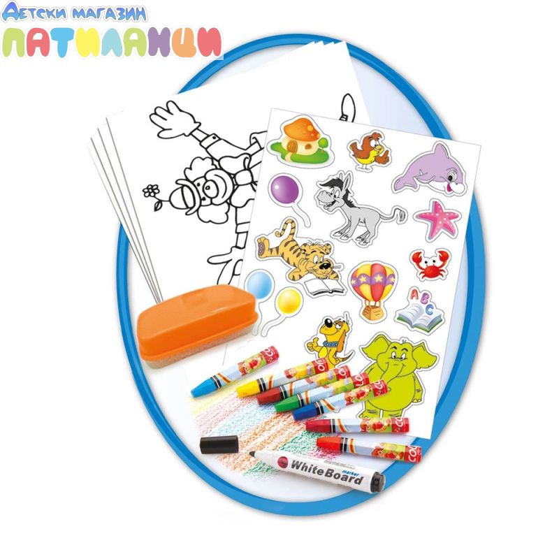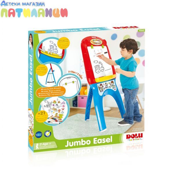 Статив, който лесно се сгъва и разгъва. Съхранението му не отнема много място в дома, детската градина или училището. В горната си част има 2 клипса за които да захващате лист хартия независимо от големината му. Върху статива може да се пише директно с маркера, върху закрепен лист хартия или да се ползва като магнитна дъска (в комплекта не са включени магнитни фигурки). По средата има борд в който да слагате пастелите, гъбичката, маркера или др.