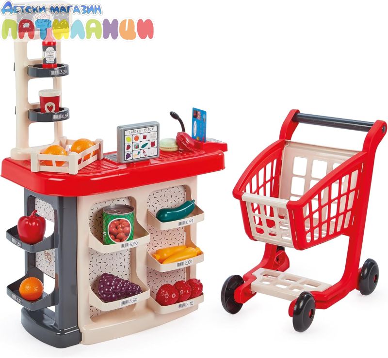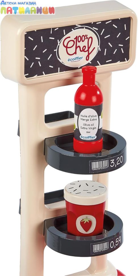 ИСТИНСКИ МАЛЪК МАГАЗИН: С различните си добре запълнени рафтове и количка за пазаруване, този търговец е истински малък магазин за малки деца, които да пазаруват като хранителни стоки.