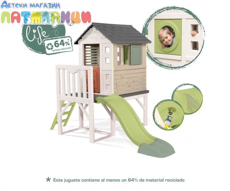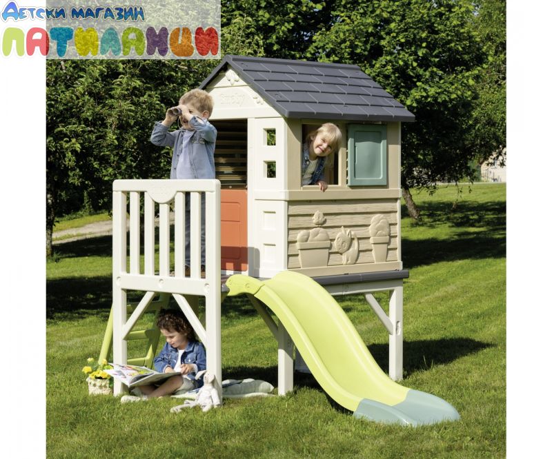 Градинска къща с веранда и пързалка Smoby Life Stilt House 7600810802