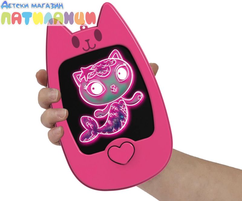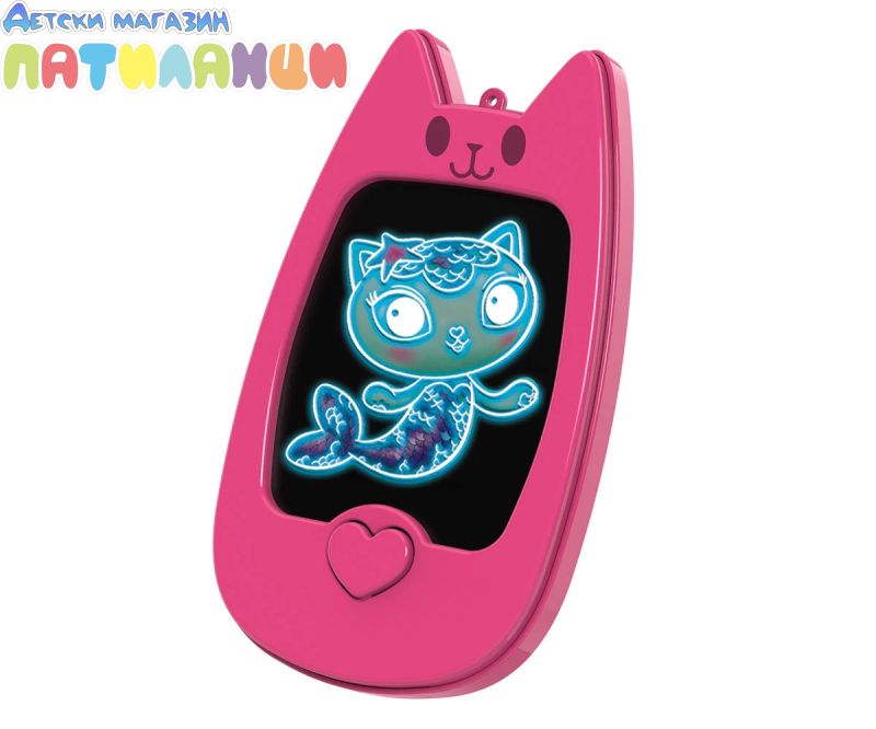 Супер готина, мобилна светеща дъска с размери, удобна за детската ръка. Проследявайте постерите с героите на Габи и ги осветявайте! Включва 3 маркера и отпечатани постери. Станете креативни и се присъединете към любимите си герои от Къщата за кукли на Габи с този великолепен светещ мобилен телефон за рисуване, предназначен за млади художници! Добре дошли в Къщата на Габи, където креативността на Габи и сладките котки се съчетават в цветно магическо изживяване! Можете да вземете този светещ мобилен телефон за рисуване навсякъде. Портативна, високотехнологична дъска за рисуване с размери на мобилен телефон. С толкова много забавни и творчески дейности за избор, това е перфектният начин творчески малчугани да преборят скуката. Продуктът разполага с 8 сменяеми, мигащи цветни светлини и 2 оценени изтриващи маркера. Време е да бъдете креативни! Перфектната творческа играчка от Къщата за кукли на Габи. Страхотен начин да насърчите креативността и да помогнете на децата да се научат как да се изразяват визуално. С блестящ компактен дизайн, мобилният размер е прав лесен за носене с вас по време на пътуване или ваканции.