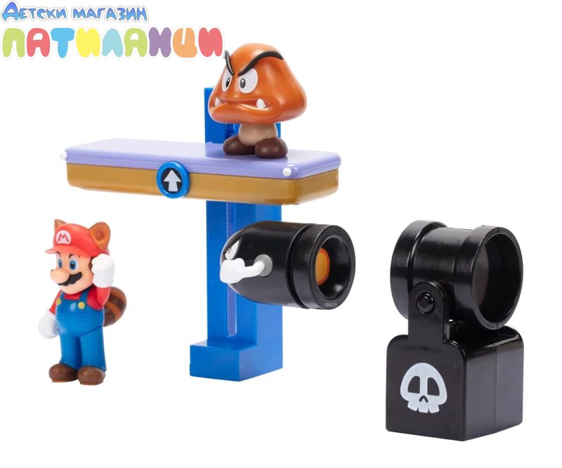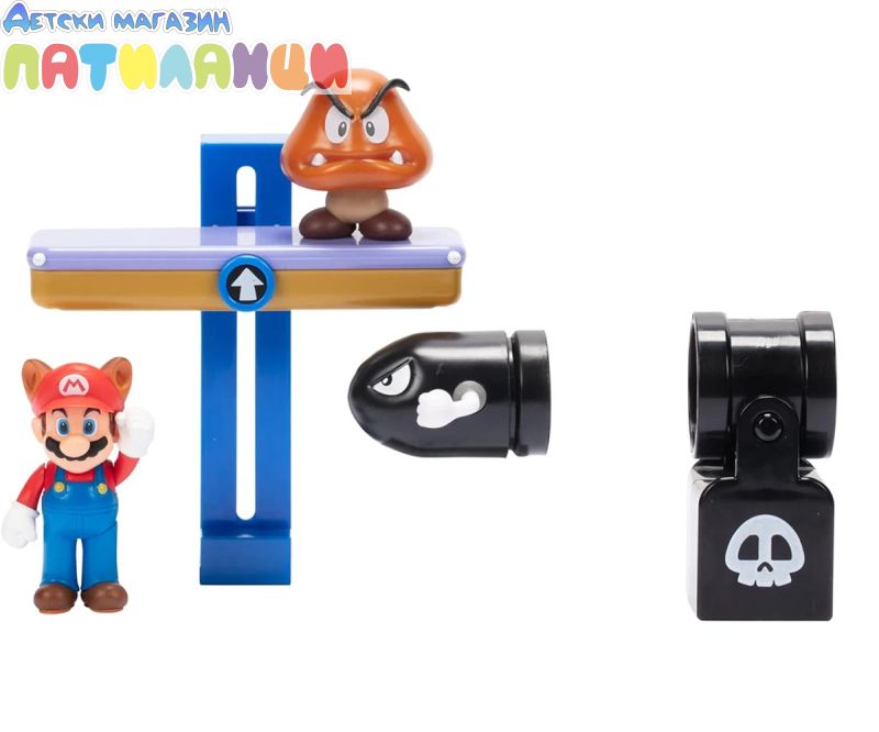 - Включва 6 см. фигурки на Raccoon Mario, Bullet Bill и Goomba.
