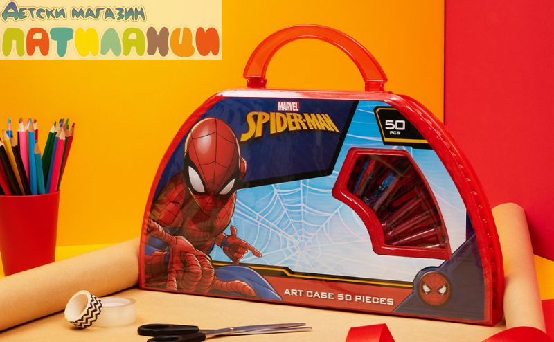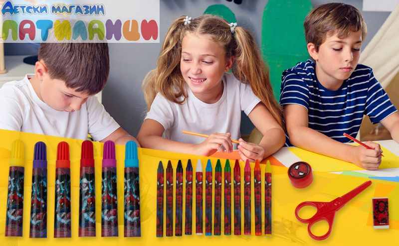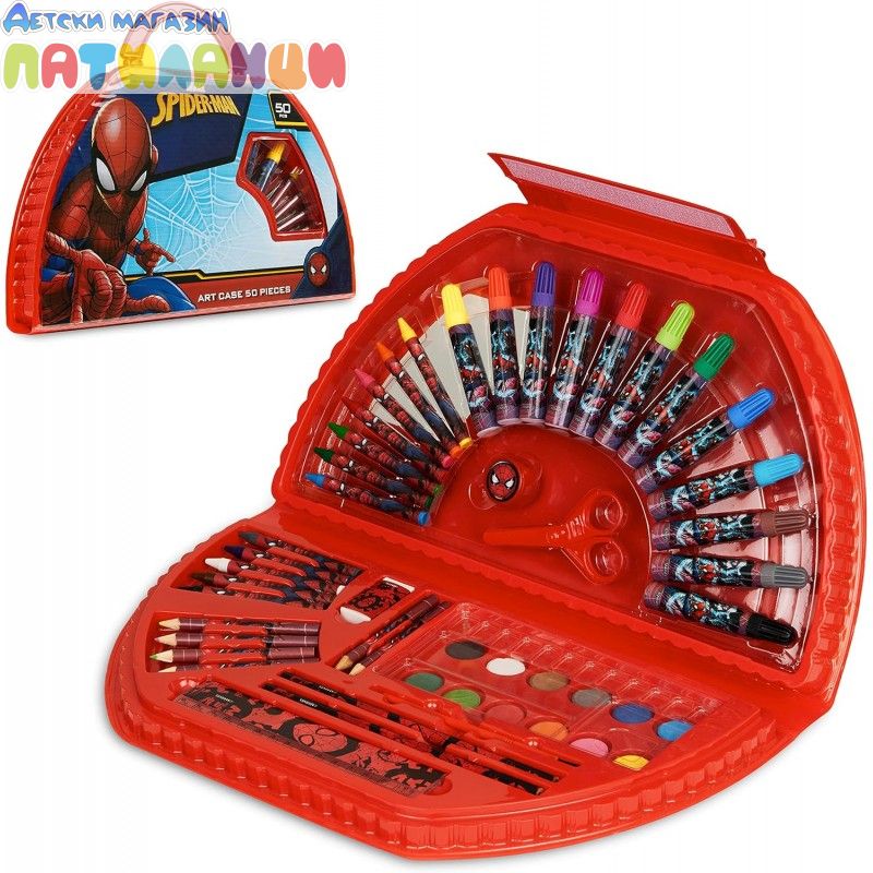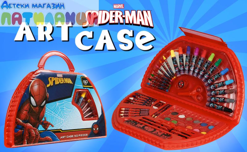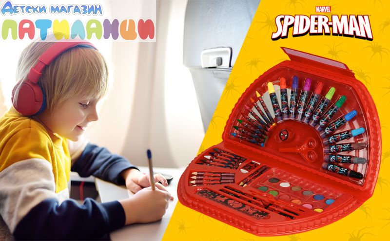 Включва: удобна чанта - куфарче, 6 цветни и 2 черни молива, 12 пастела, 12 водни боички, 12 флумастера, четка, острилка, гумичка, ножичка, линия.