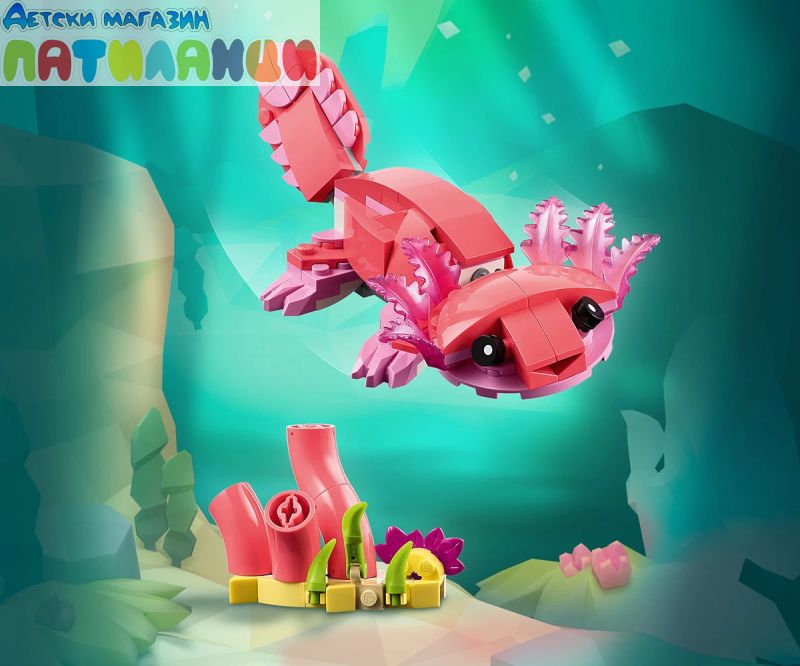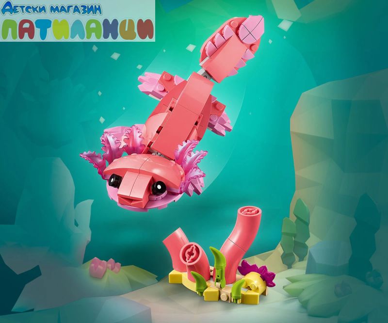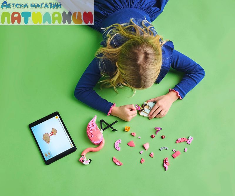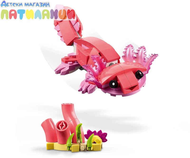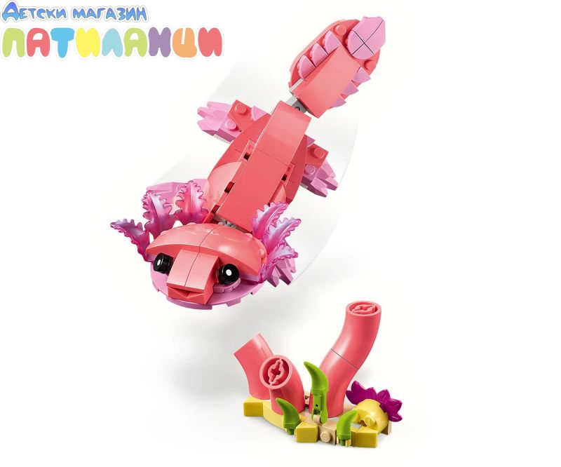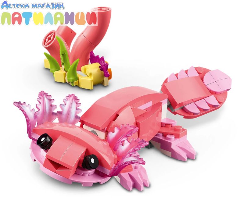 Безкрайни възможности за игра – децата могат да разиграват ролеви истории с 3 различни модела животни (имайте предвид, че моделите не могат да бъдат построени едновременно): розово фламинго, розово какаду или розов аксолотъл;