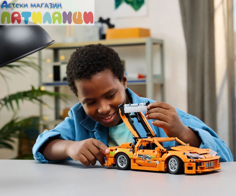 Този комплект с модел на кола за момчета и момичета слага начало на скоростни забавления за фенове на Бързи и яростни на възраст над 9 години. Сглобете автентичните детайли на спортната кола LEGO® Technic Fast and Furious Toyota Supra MK4 (42204).След това ускорете забавлението, докато разглеждате реалистичните детайли. Тази версия на модел на емблематична филмова кола включва 6-цилиндров двигател, кормилно управление, отварящ се капак и подвижен покрив тарга. В багажника има дори 2 бутилки NOS – точно като тези от вълнуващите сцени на първия филм Бързи и яростни. Този комплект с кола Supra е креативен подарък за деца, които обичат колите от „Бързи и яростни“. Освен това е страхотен комплект, който да построите заедно и да споделите страстта си към високоскоростната филмова сага. Комплектите LEGO Technic се отличават с реалистично движение, което въвеждат младите строители с LEGO в света на техниката. Дайте на децата лесно и интуитивно строително приключение с приложението LEGO Builder, където могат да мащабират и завъртат модели в 3D, да запазват комплекти и да проследяват напредъка си.