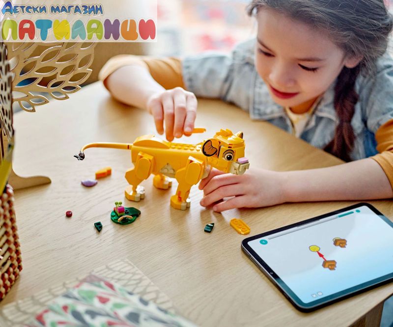 Тази играчка за построяване, игра и показване LEGO® ǀ Disney Лъвчето Симба (43243) е забавен подарък, подходящ за деца и фенове на Цар Лъв на възраст 6+, който включва модел на герой за конструиране в чест на 30-тата годишнина на Цар Лъв. Фигуратаот LEGO ǀ Disney на нетърпеливото лъвче Симба от хитовия филм има въртяща се глава и подвижни крака и опашка и е в комплект с листо и 4 „буболечки“, които да „похапне“. Този комплект за конструиране за деца е забавна идея за подарък от Disney за деца и любители на филма, страхотен е за показване във всяка стая и има много възможности и функции, които вдъхновяват игрите с въображение. Комбинира чудесно с други строителни комплекти за деца LEGO ǀ Disney от поредицата (продава се отделно) и е с идеален размер за пренасяне и игра. За още повече забавление децата могат да се наслаждават на лесно и интуитивно строително приключване с приложението LEGO Builder, в което могат да сбъркат и завъртят 3D моделите, да запазят комплекти и да наблюдават напредъка си.