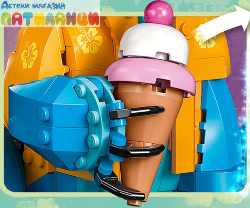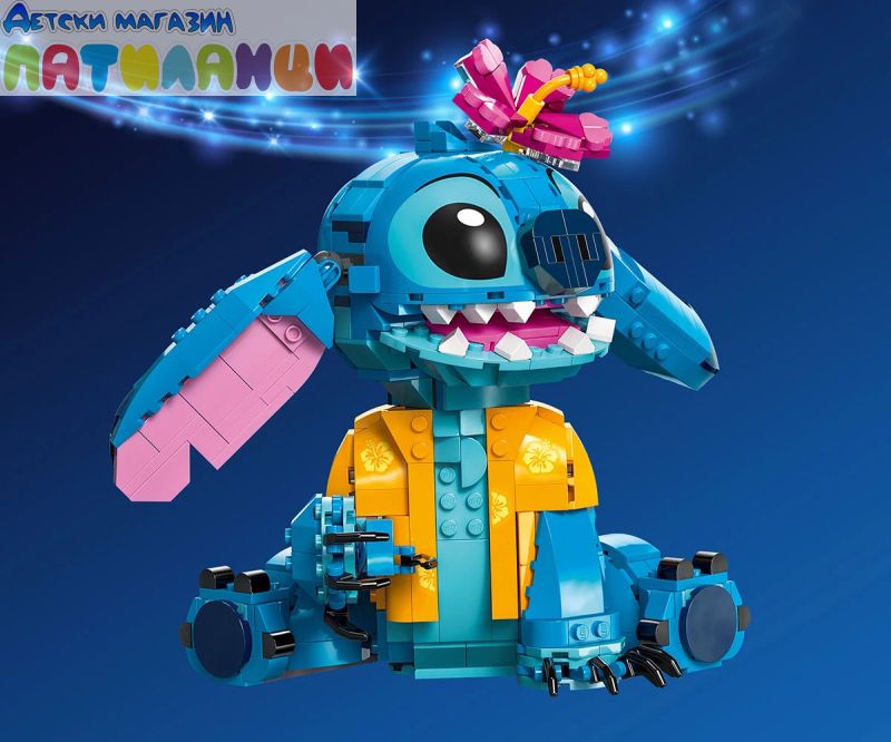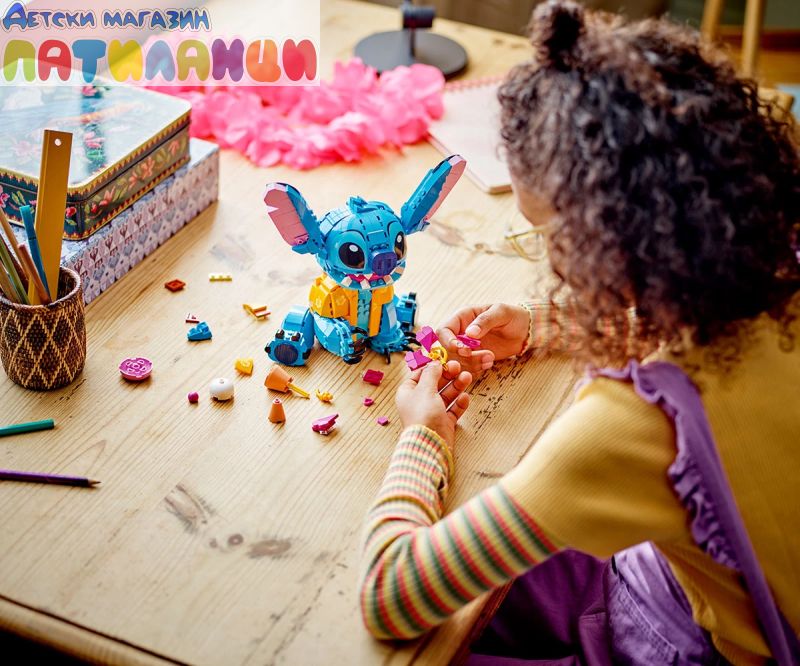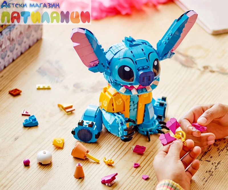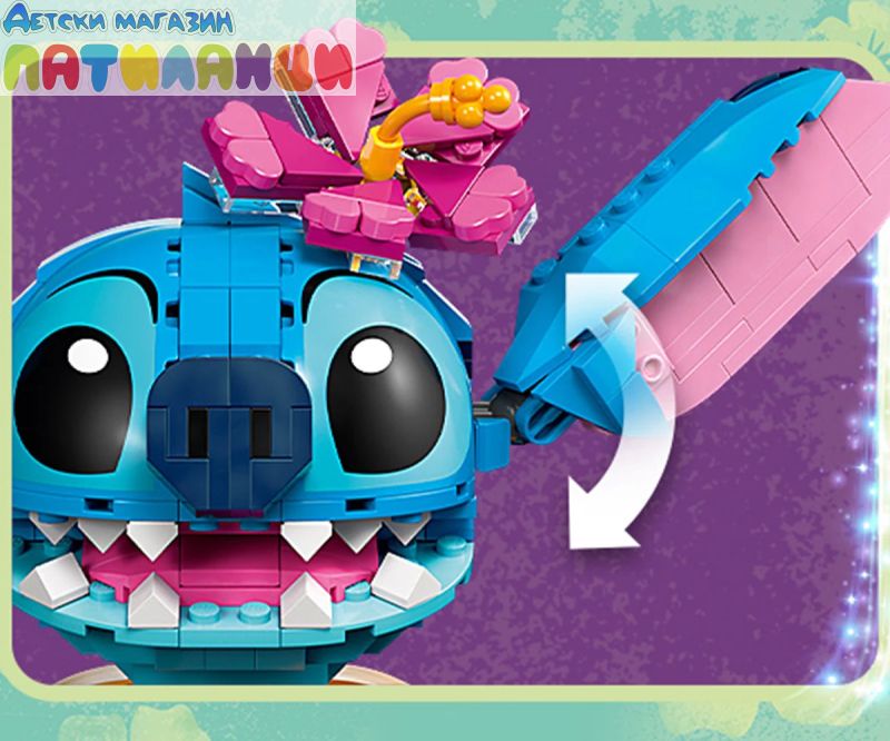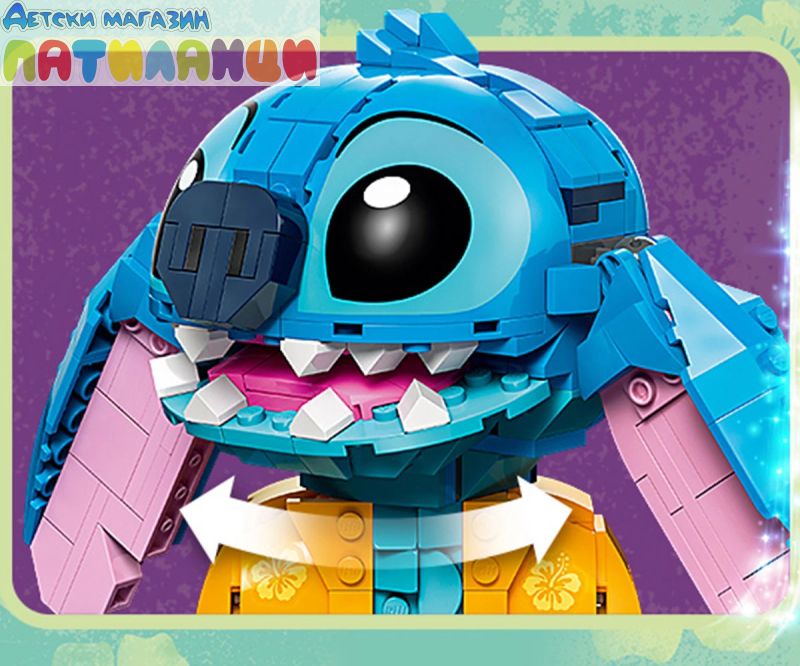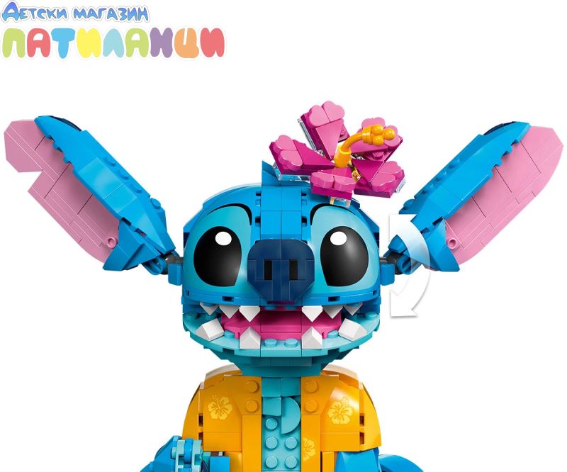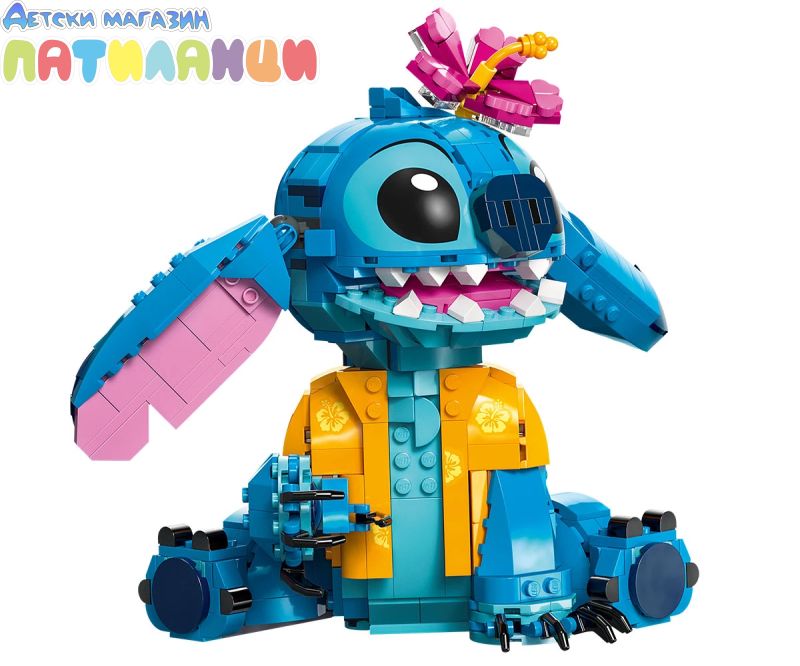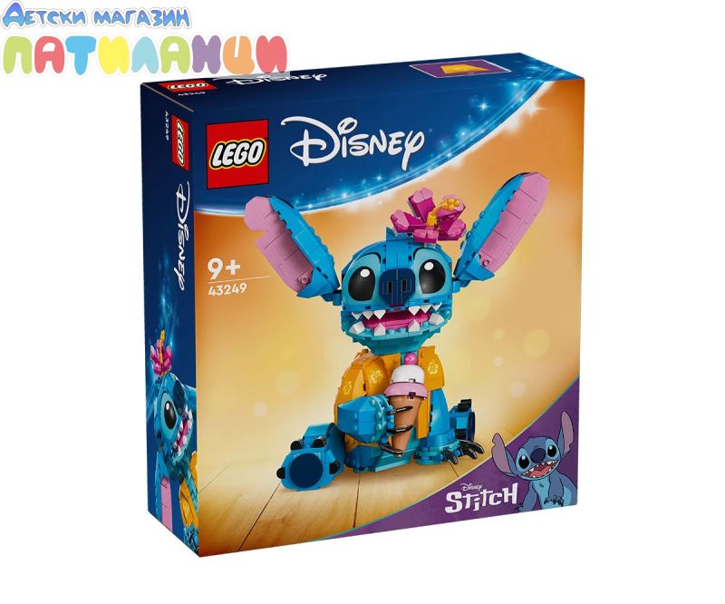 Поглезете всяко дете с комплекта за конструиране и игра, включващ героя Стич от LEGO® ǀ Disney с движещи се уши, въртяща се глава, фунийка за сладолед и други.
