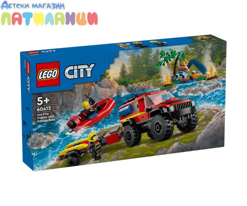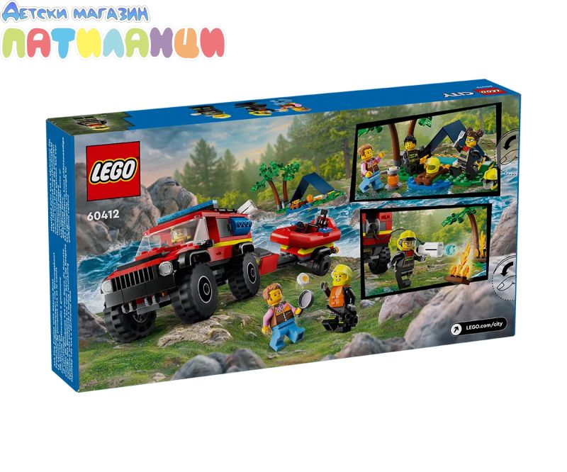 Конструктор LEGO City Fire 60412 Пожарникарски камион 4x4 със спасителна лодка
