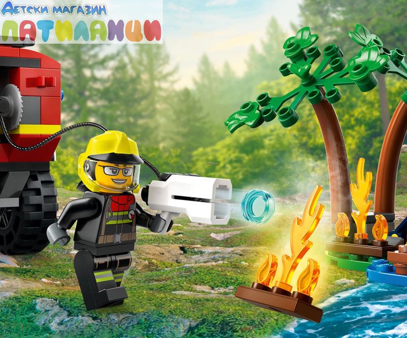 Какво има в строителния комплект LEGO®? – всичко, от което децата се нуждаят, за да построят пожарникарски камион 4x4, ремарке, спасителна лодка, палатка и сцена от къмпинг с лагерен огън, плюс минифигури на лагеруващ и 2-ма пожарникари
