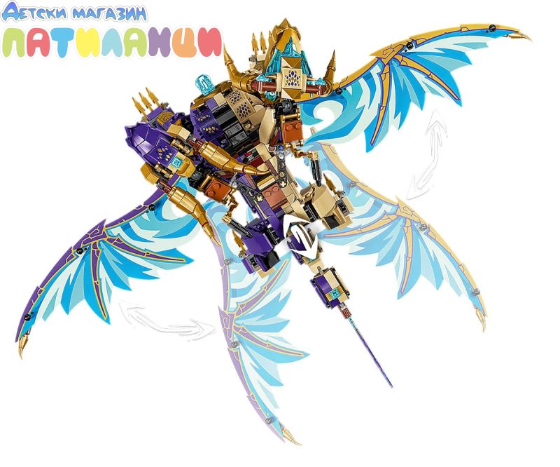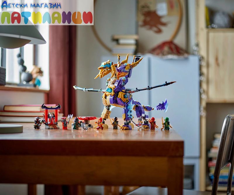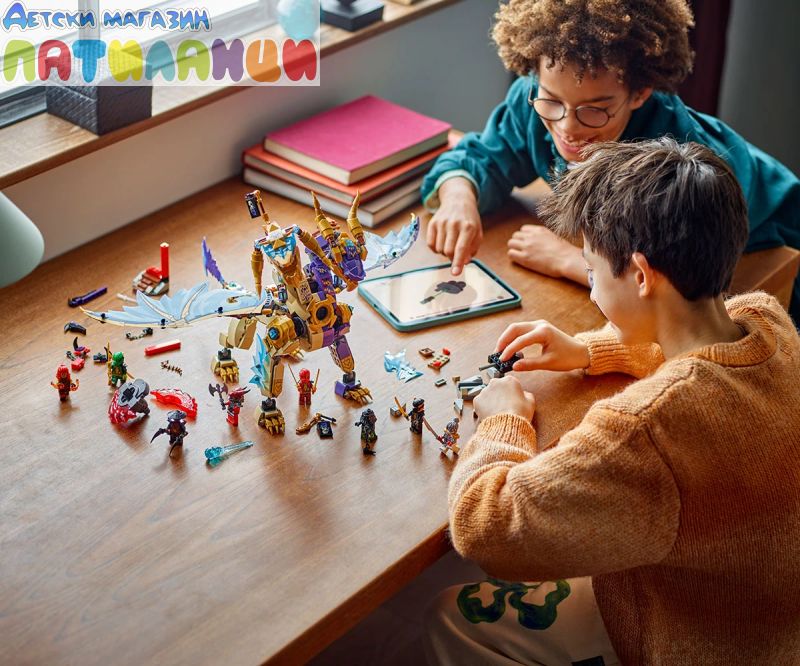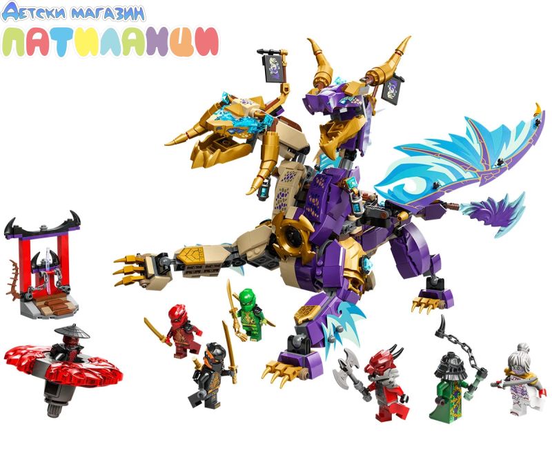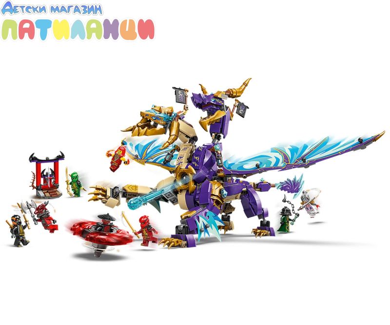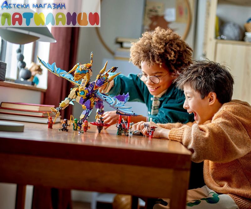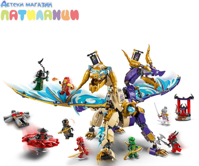 Интерактивен дракон NINJAGO® – децата могат да активират оръдие в гърдите на дракона и да движат големите му крила от фолио напред -назад с помощта на лост на гърба му;