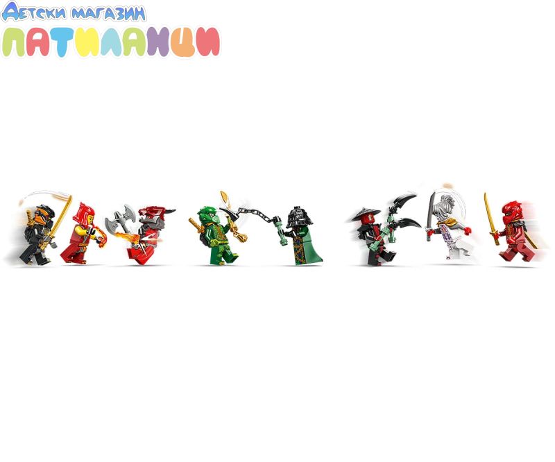 8 минифигури NINJAGO® – този строителен комплект LEGO® включва нинджа воините Лойд, Коул, Уайлдфайър и Кай и техния съюзник Пиксал, плюс злодеите Дрикс, Заркт и Драконов воин;