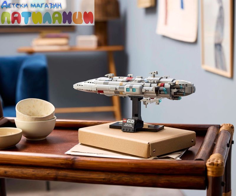 Оглавете сложен строителен проект, за да пресъздадете Космически крайцер Home One от Star Wars: Return of the Jedi™. Върнете се в епичната битка на Ендор, докато строите флагмана на флота на Съюза на бунтовниците. Покажете своя колекционерски модел от тухлички на стойка с медицинска фрегата Nebulon-B, която „лети“ до него, и свалете страничната част на Home One, за да видите интериорните детайли.