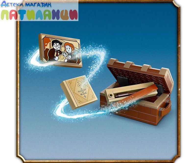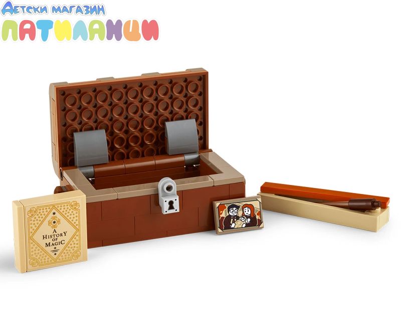Аксесоари за игра – играчката за деца също така включва огромен куфар за конструиране, съдържащ портрет на Хари Потър и неговите родители, книга История на магията и магическа пръчка от тухлички в кутия;